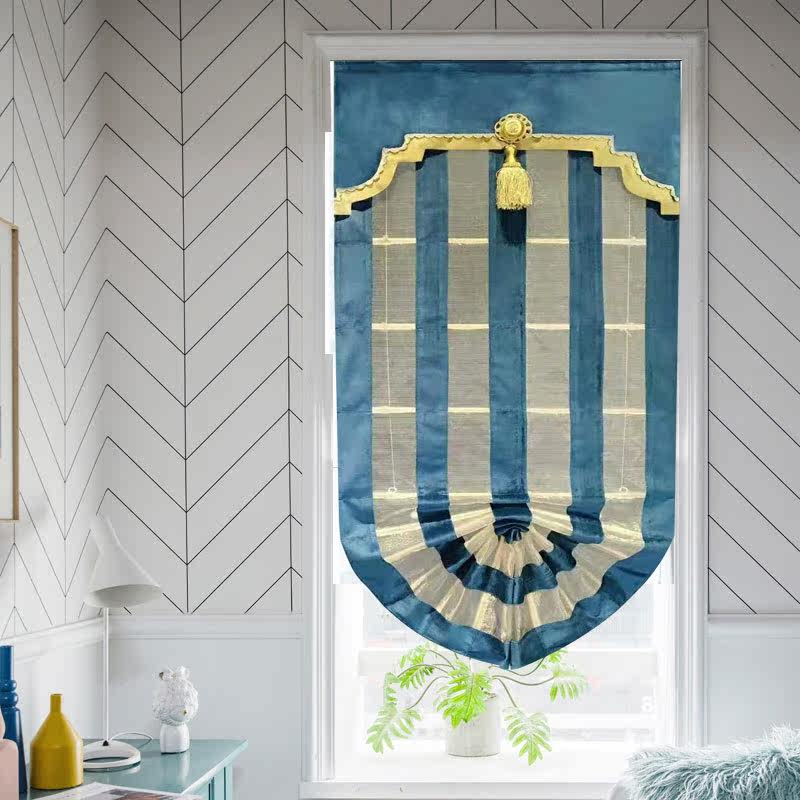 Roman curtain lifting blinds small windows Short doors blinds 21 years new modern minimalist light lavish bedroom book room scroll-pull curtains