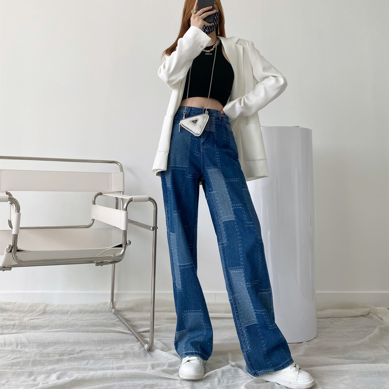 TopG straight cylinder jeans female parquet with high sub lengthened high waist loose wide leg pants small crowdpants autumn