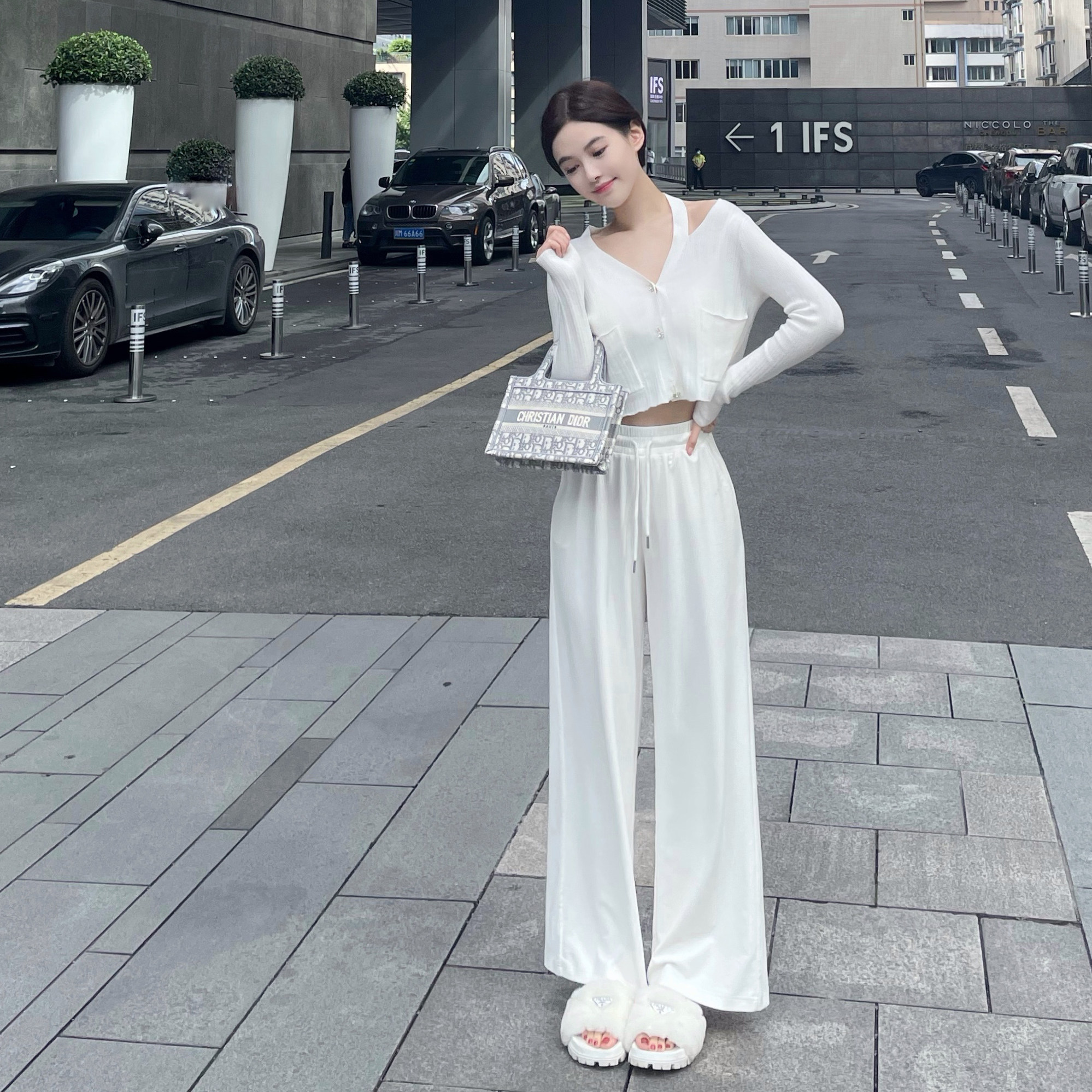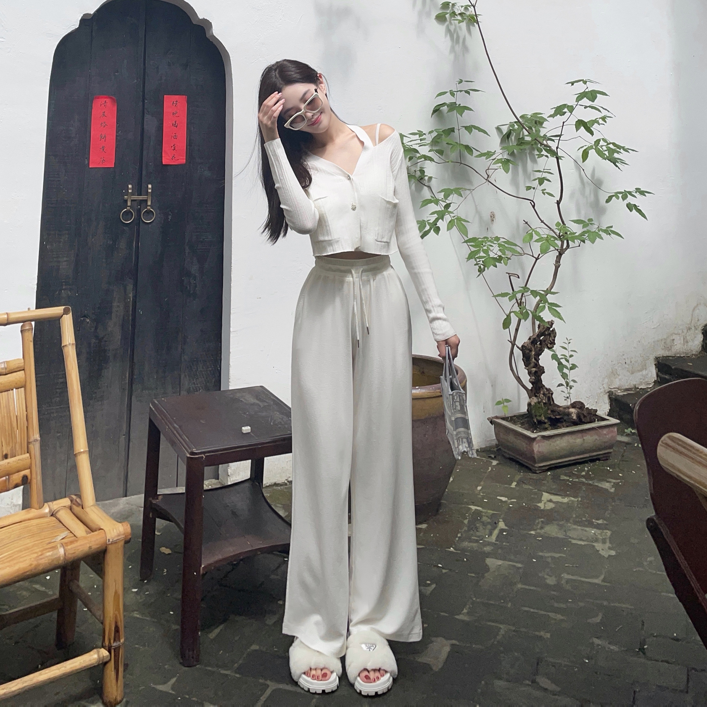 nicky white casual pants wide-leg pants women's high waist drape straight trousers drape mopping pants temperament show long legs