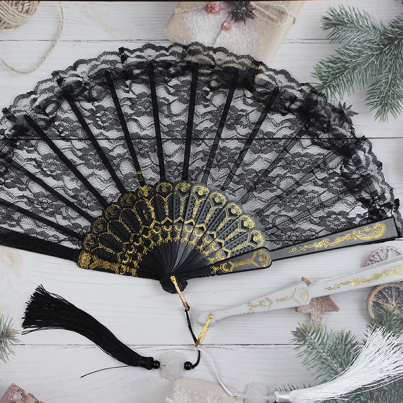 Classical Lolita lace folding fan cheongsam catwalk sick Jiao performance dark department photo shoot props lace fan