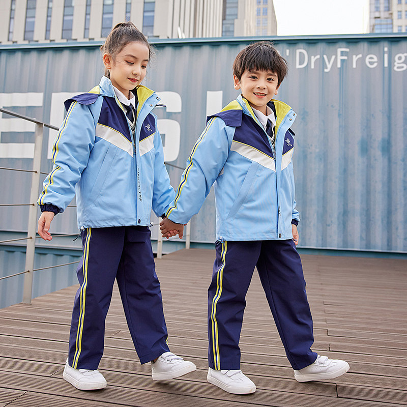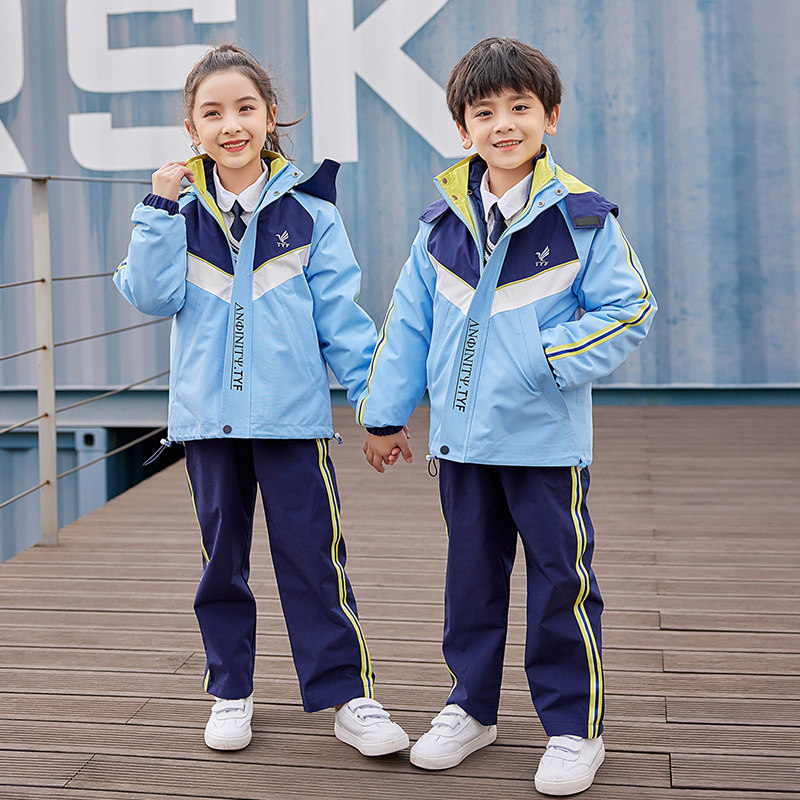 Kindergarten Garden clothes primary and middle school students'school uniforms for boys' windproof three-in-one thickened submachine outsuit