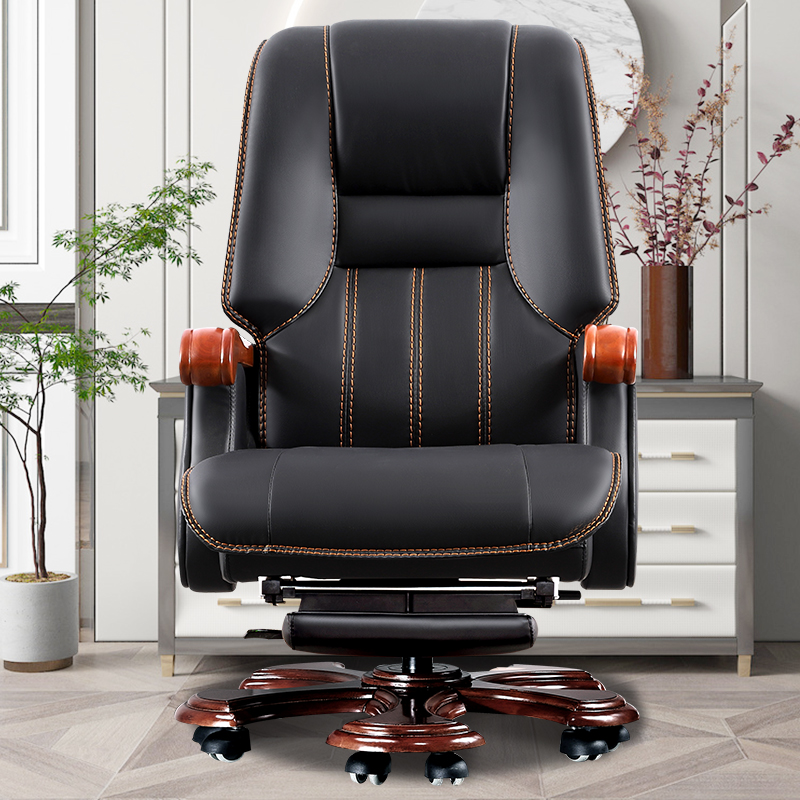 Business leather boss chair executive chair can lie solid wood leadership office chair cowhide computer chair Chinese massage office