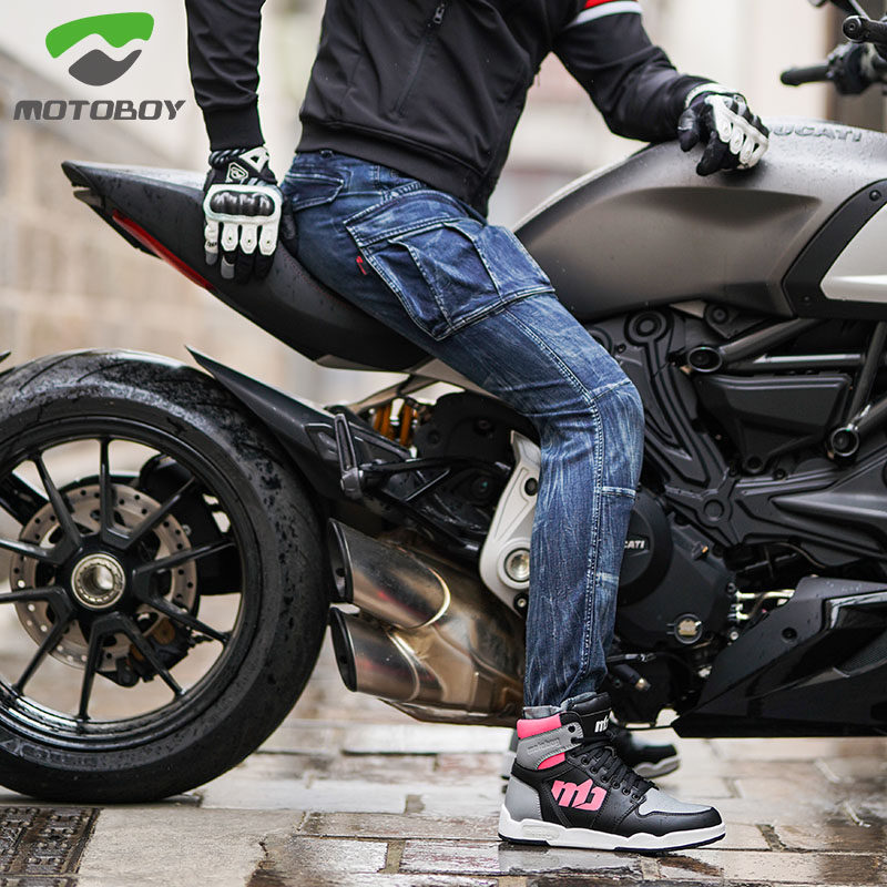 motoboy locomotive riding jeans casual workwear pants male locomotive racing pants winter warm and velvety pants