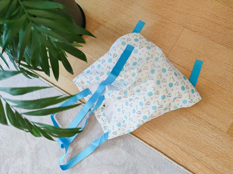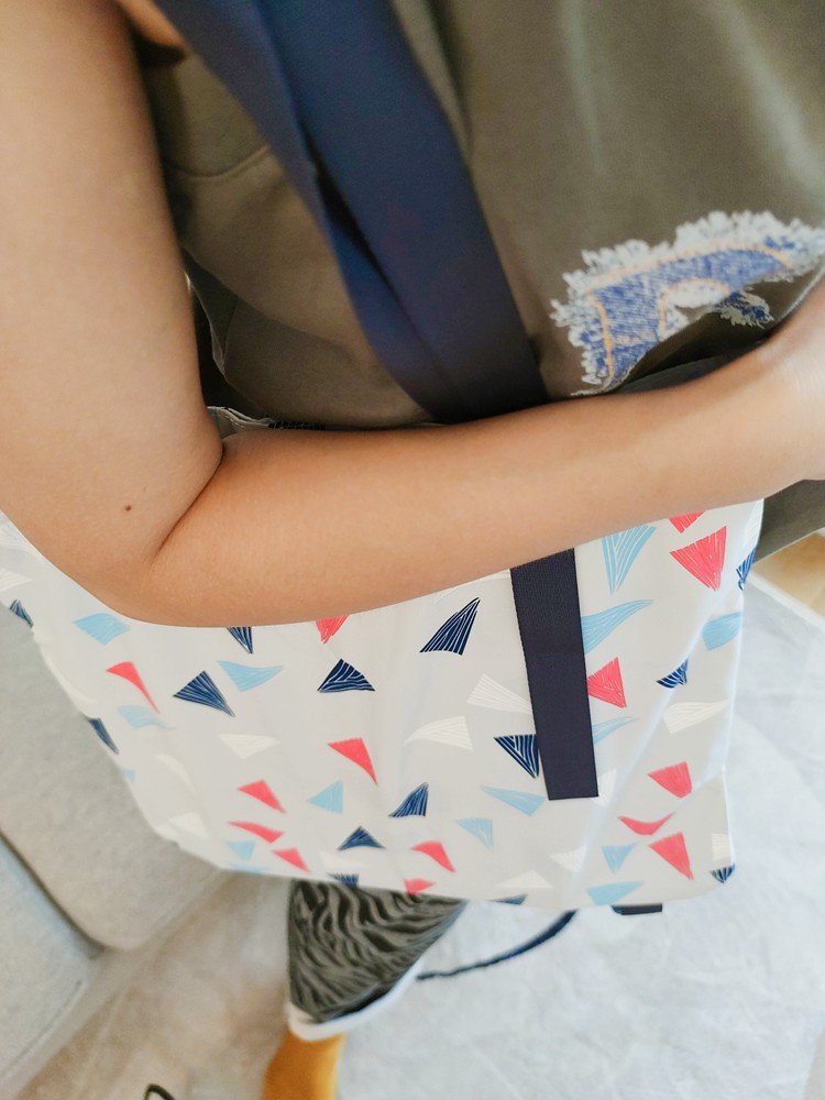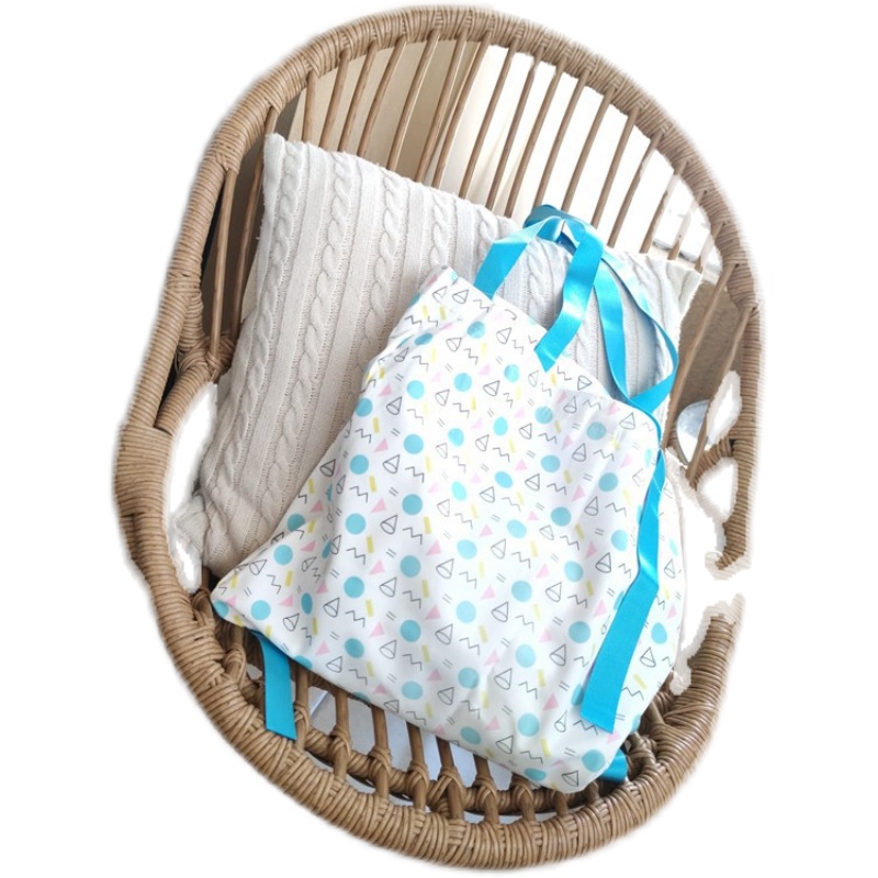 Deep blue shoulder strap * grey geometric light blue shoulder strap * white geometry