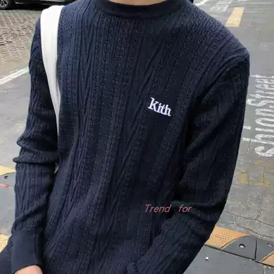 21SS KITH British wheel college style jacquard embroidery thin bottoming round neck sweater men's and women's sweater knitwear