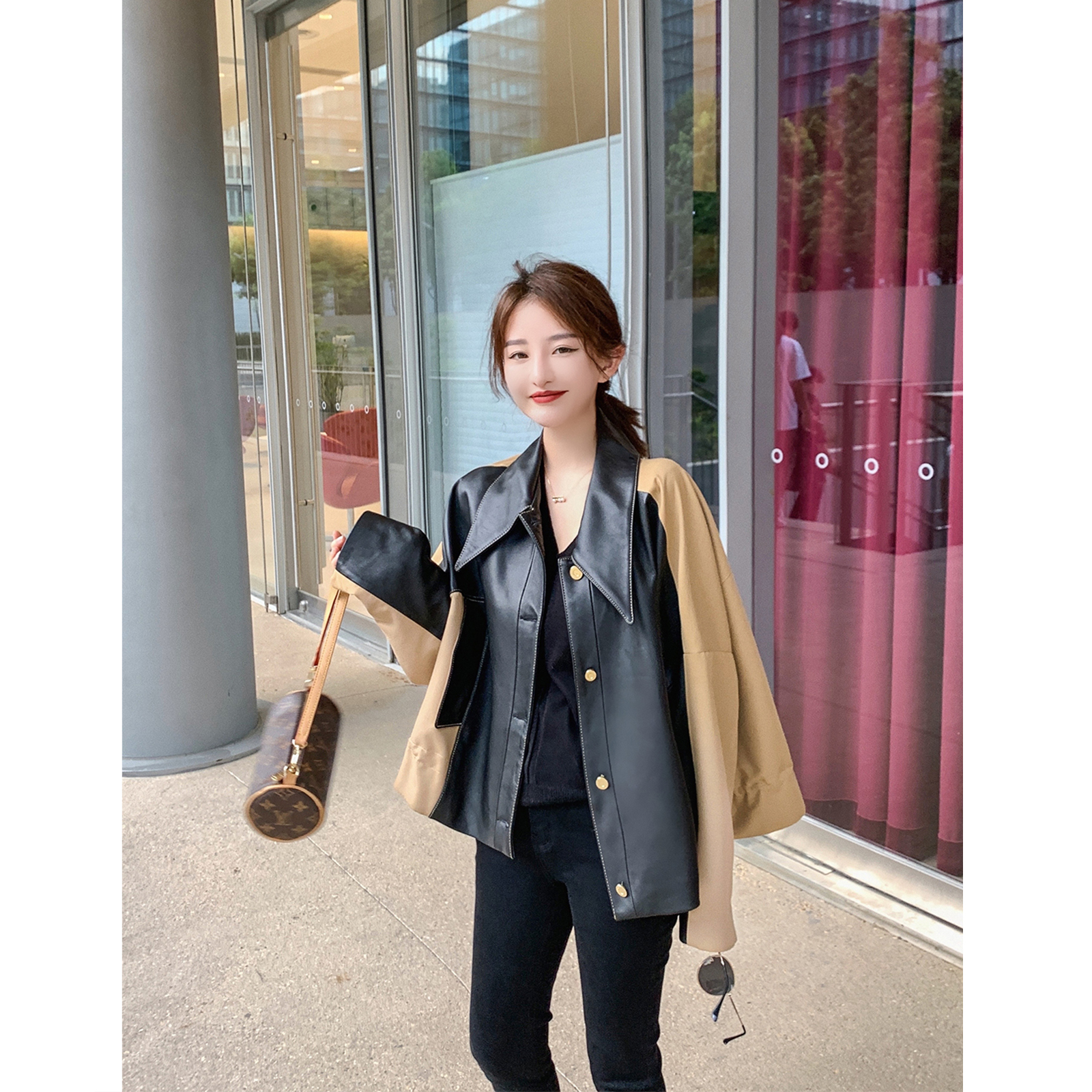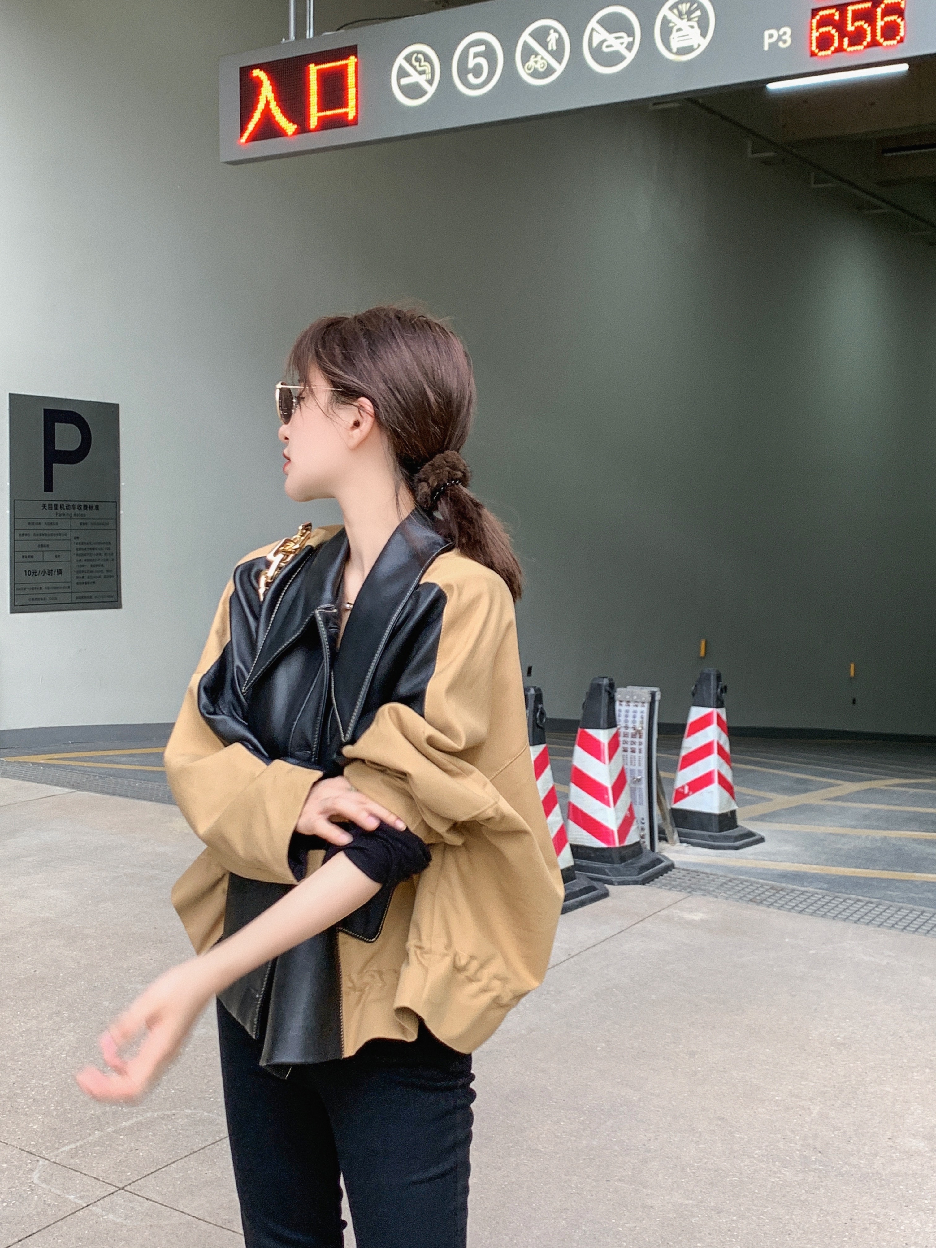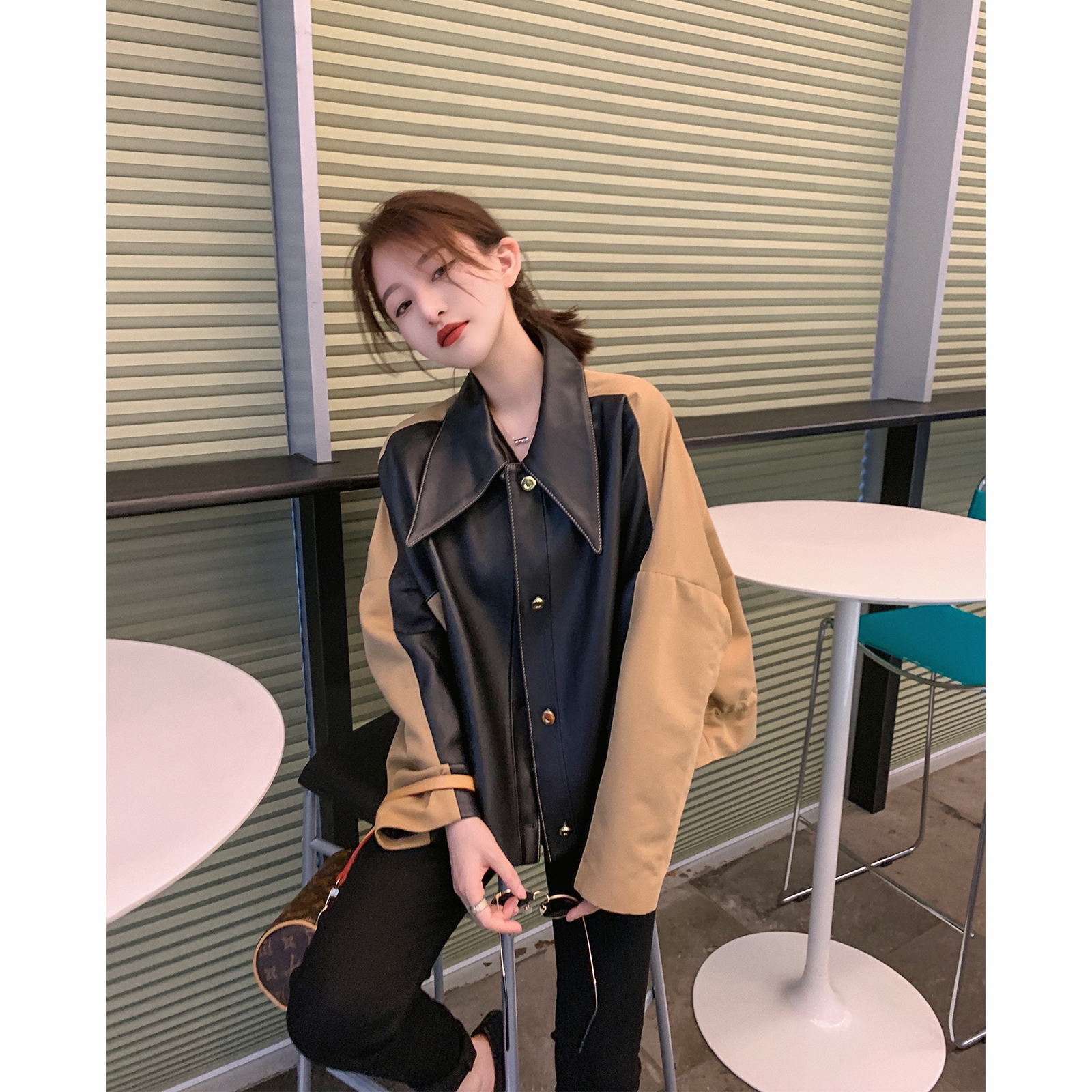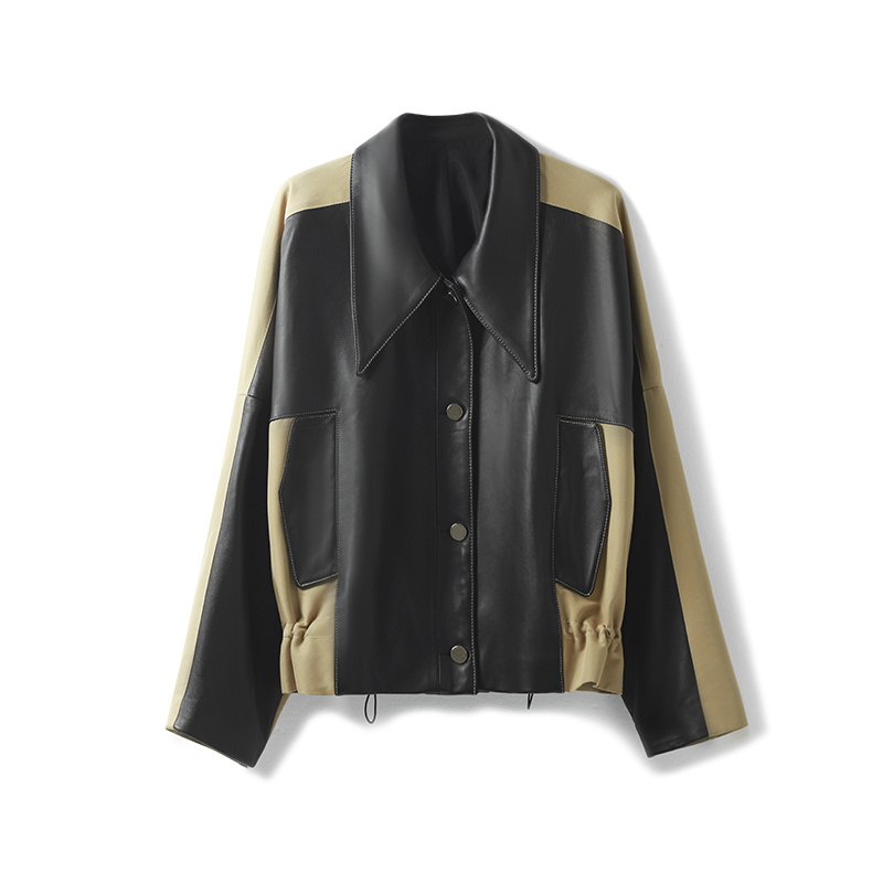Big happy homemade (spot) fried street artifact) 100% sheep skin color double spell short fried street leather clothing