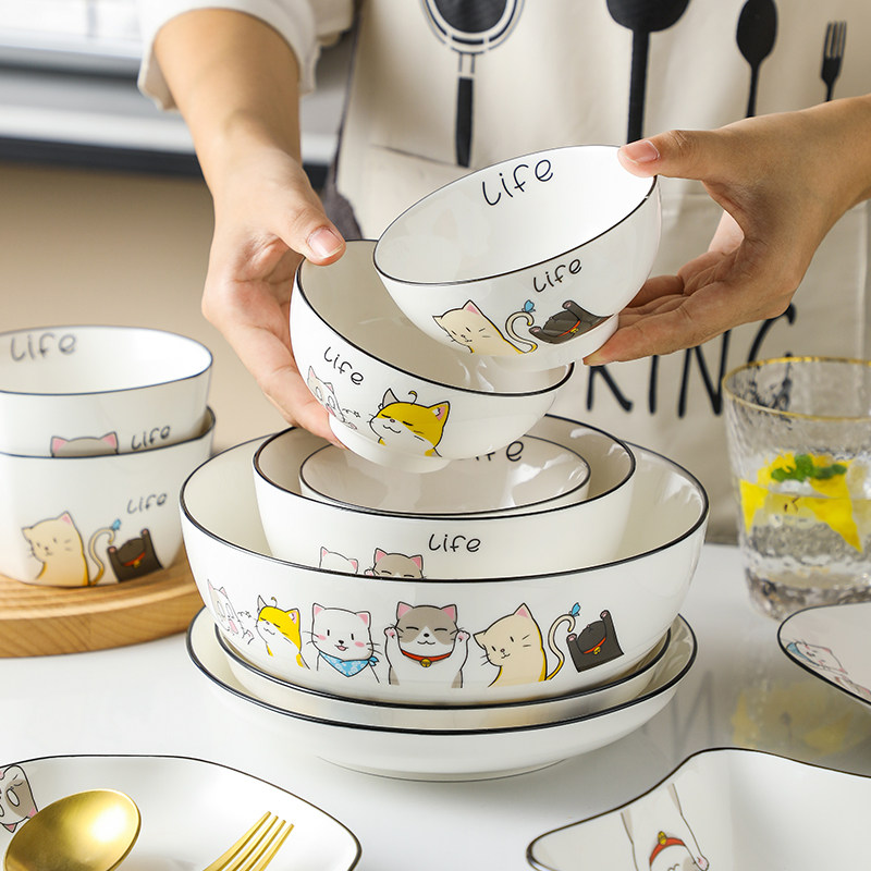 Large bowl of soup bowl cartoon cute ceramic bowl 8 inches single Japanese household tableware large rice bowl soup pot