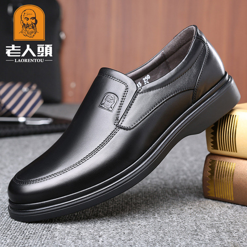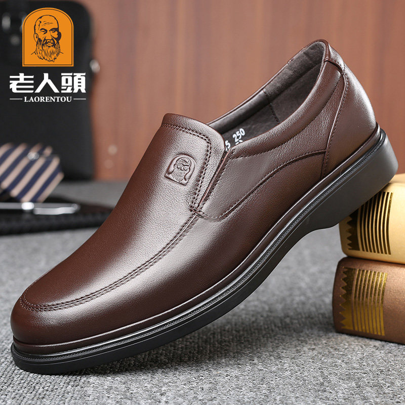 Old man head casual leather shoes men's leather autumn new men's business leather shoes soft bottom cowhide dad shoes