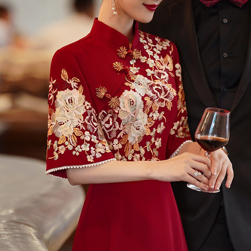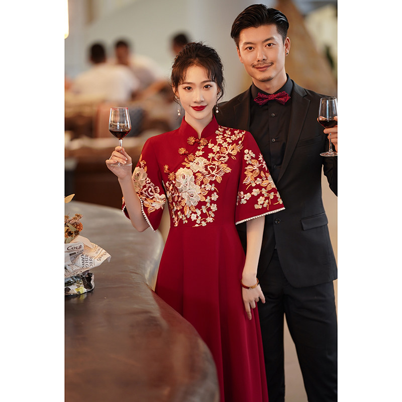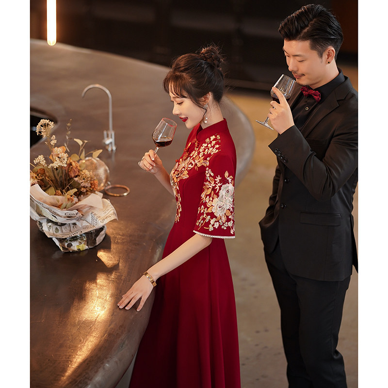 Toast clothing bride new Chinese style cheongsam wedding dress skirt engaged female 2023 new senior small man