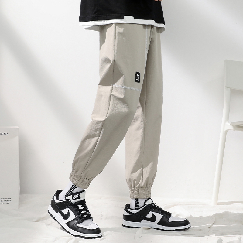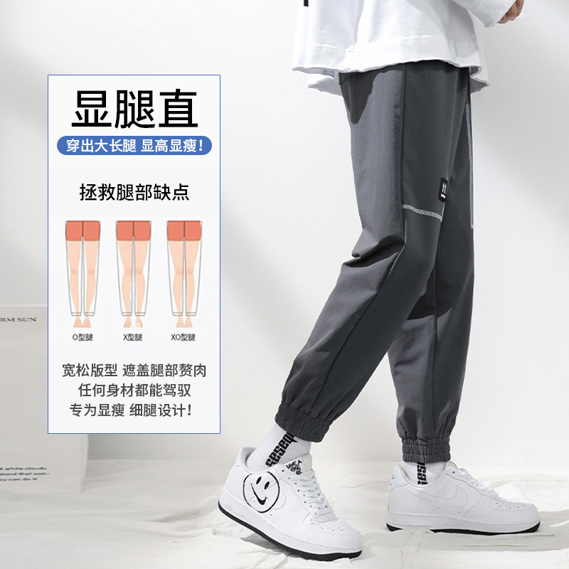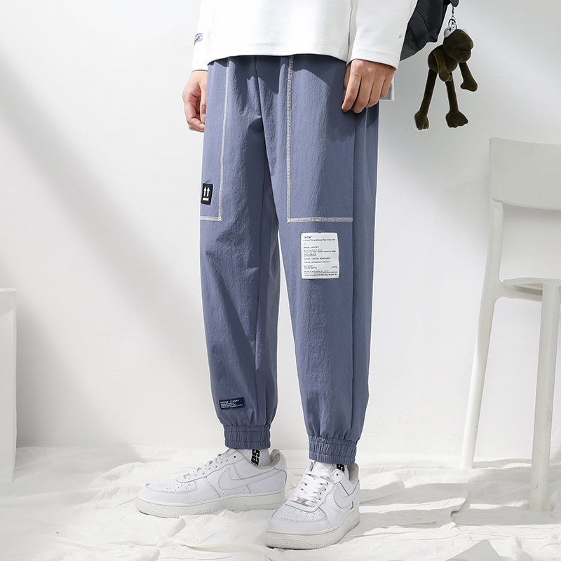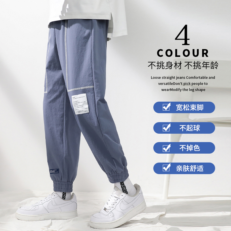 Weaving label design casual pants men's personality youth straight loose beam pants Korean fashion trendy nine-point sweatpants