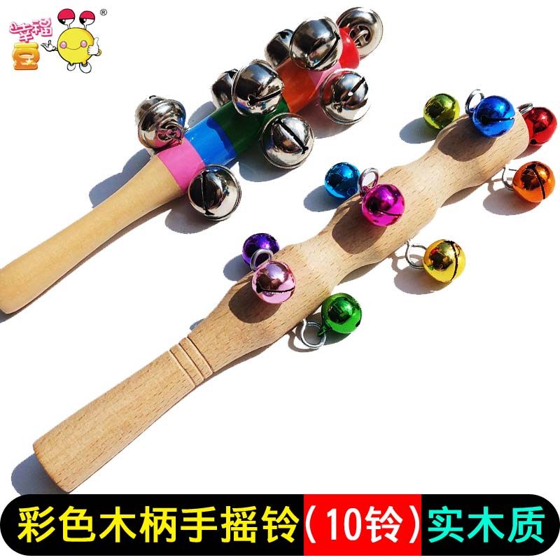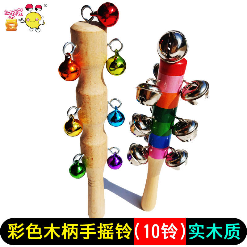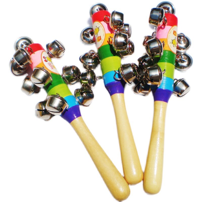 10 bell rainbow wooden handle metal bell rattle 1 10 bell rainbow bell log handle rattle 1