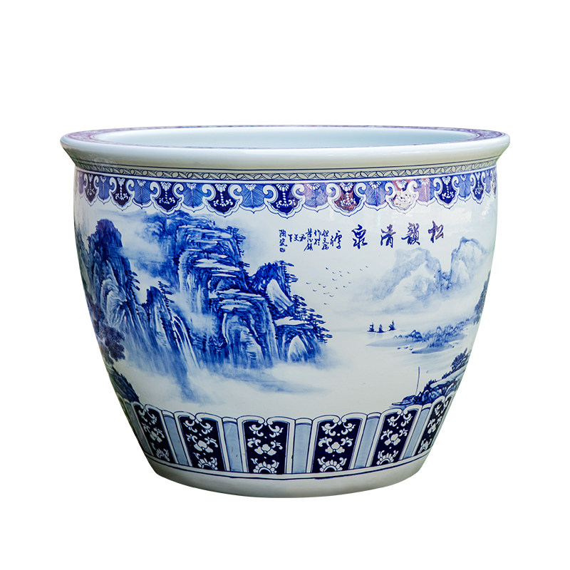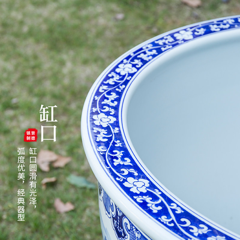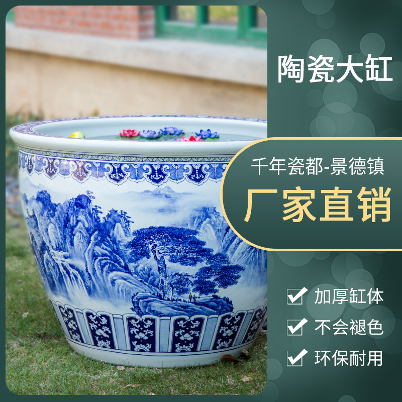 Jingdezhen ceramic fish tank hand-painted blue and white landscape tank water lily lotus flower pot extra large courtyard lucky decoration large tank - Taobao
