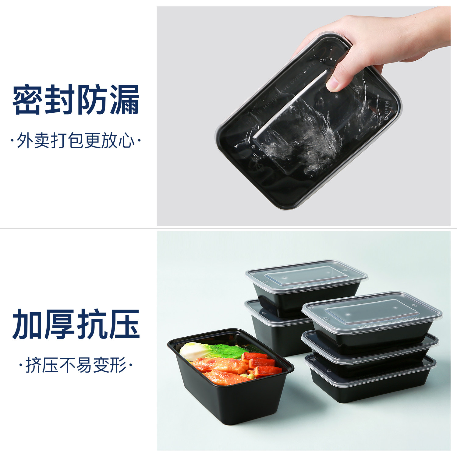 1000ML rectangular disposable lunch box plastic delivery packing box thickened black fast food transparent lunch box
