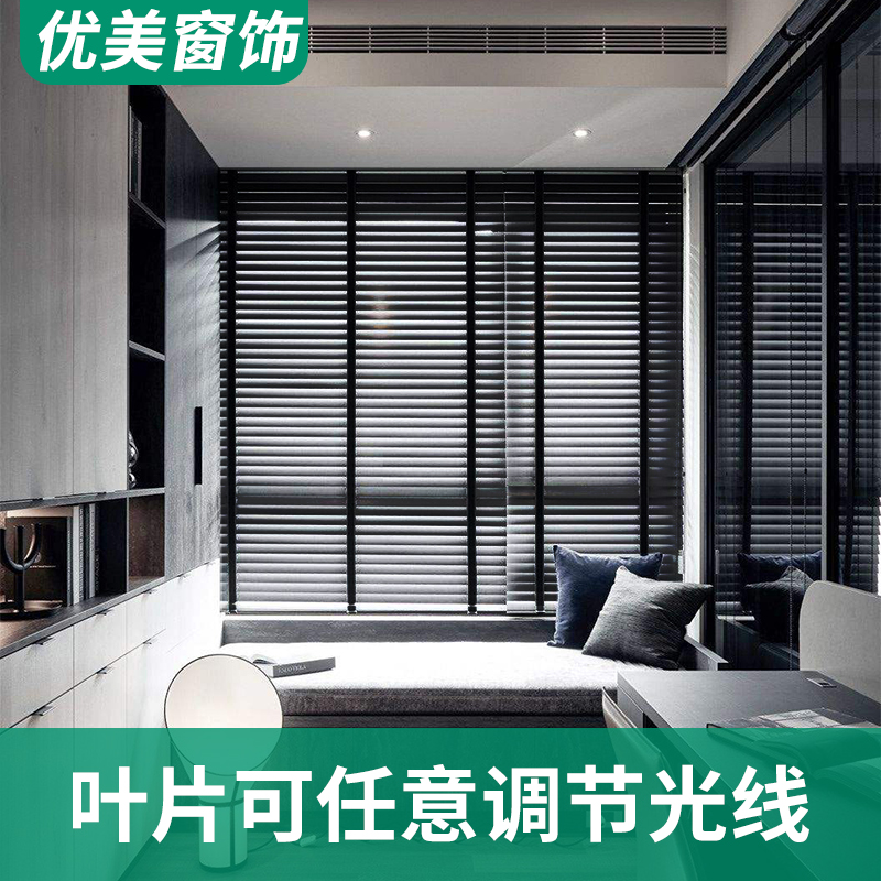 Black all solid wood venetian blinds wooden living room bedroom office study shading shade electric lift custom