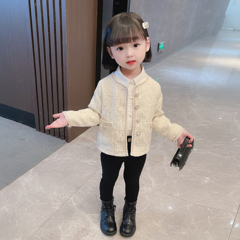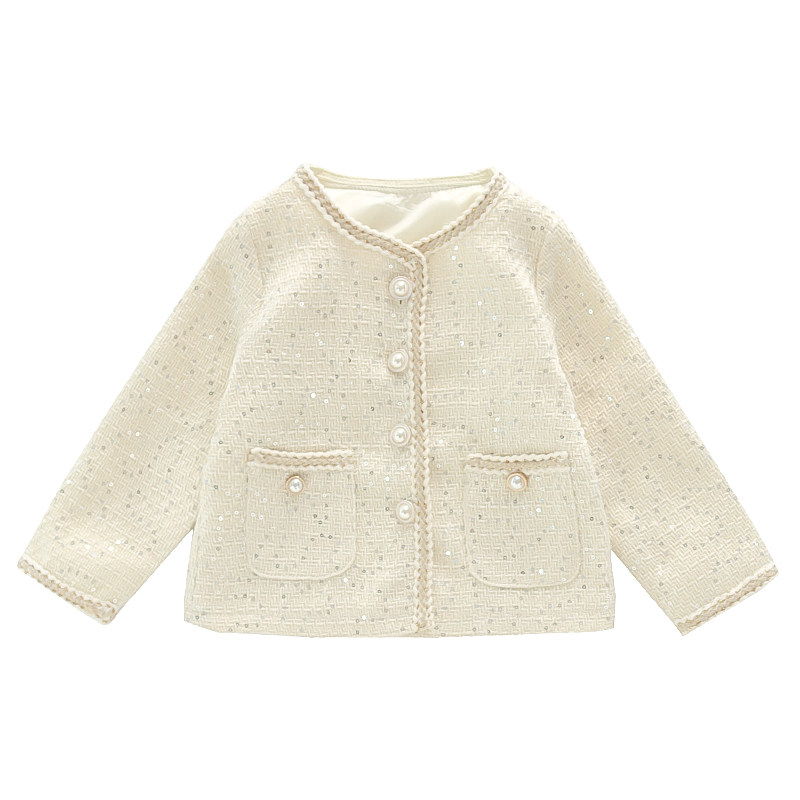 Girls long-sleeved jacket spring and autumn foreign style fashionable children's clothing autumn cardigan girl baby autumn clothing beige baseball uniform