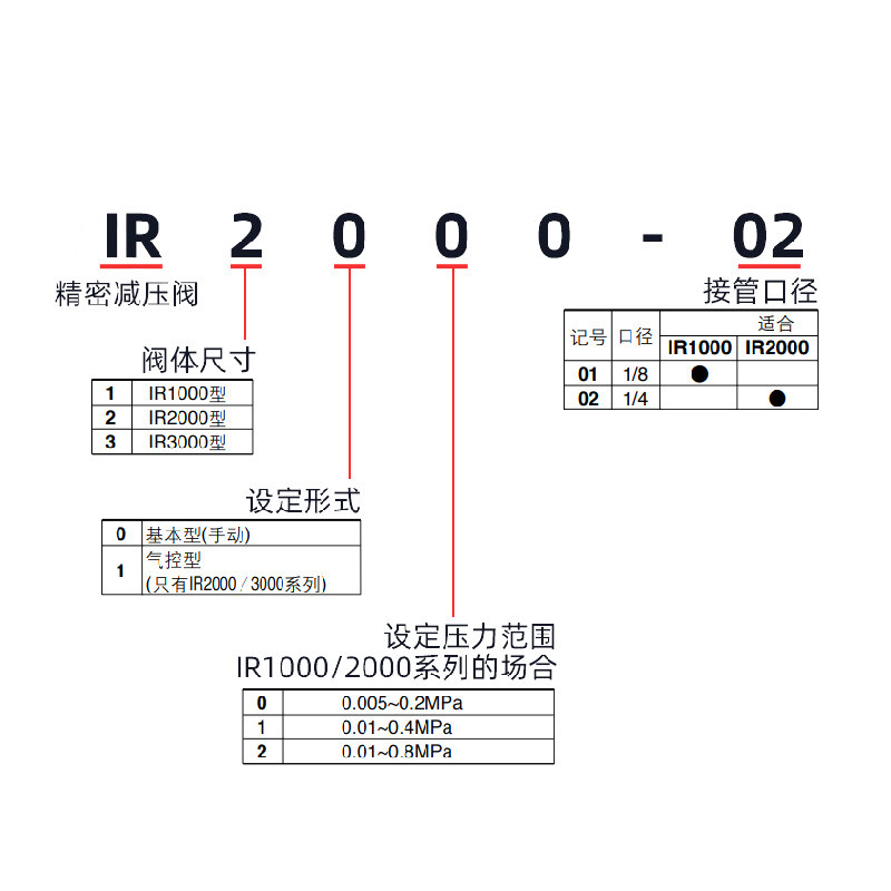 IR1000-01BG Pressure 0 005-0 2MPaIR1010-01BG Pressure 0 005-0 4MPaIR1020-0