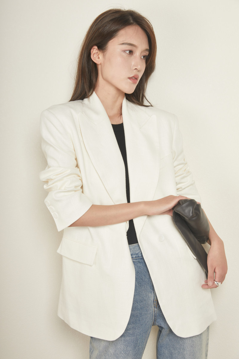 Xianjiajiaoxiang Meat-thin sentiment weaving Linen white suit coat female spring casual suit coat