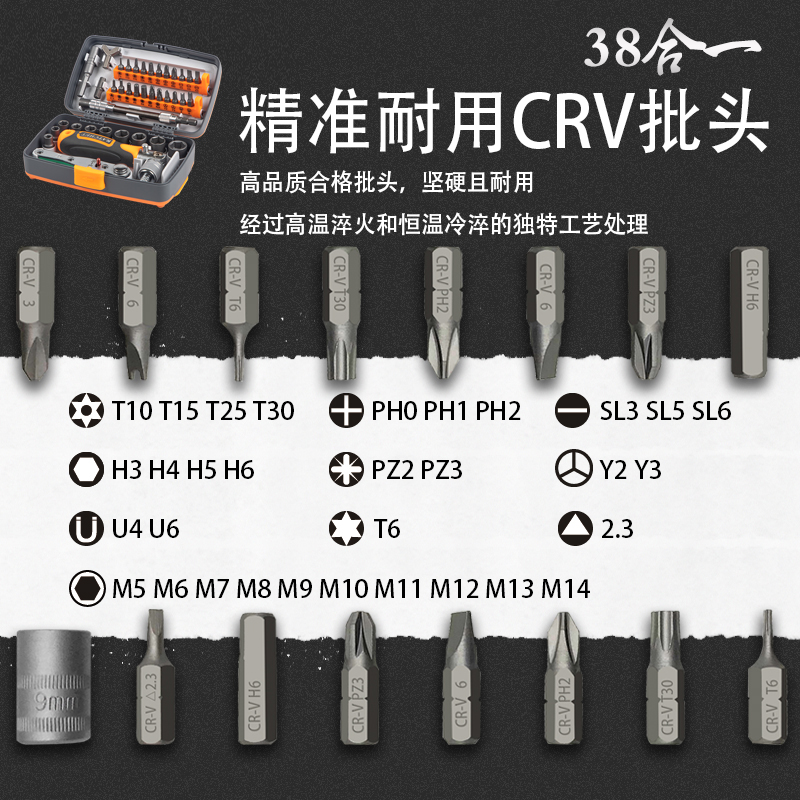 38 in one high hardness multi - function ratchwheel wrench rotary screwdriver batch suit household mobile phone maintenance tools