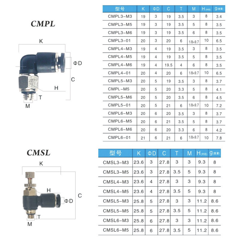 Pneumatic mini throttle valve micro throttle valve air conditioning SL3 mm 4MM trachea M3 male screw thread M5