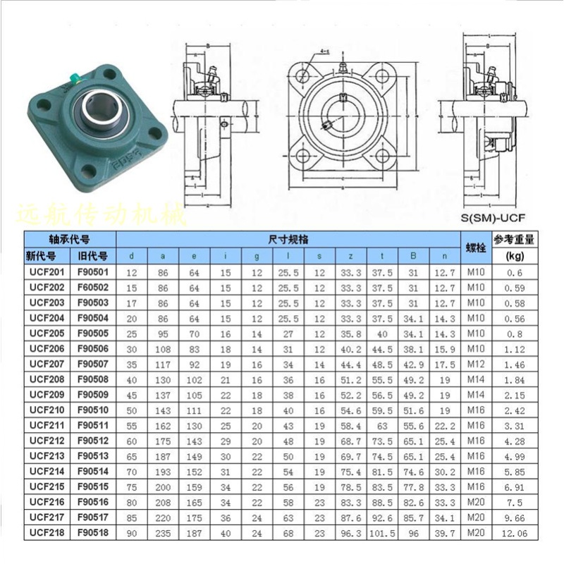 Stainless steel spherical bearing with square seat SUCF203 204 SF205 F206 207 208 209 210