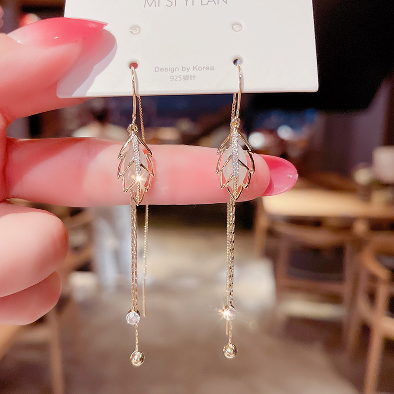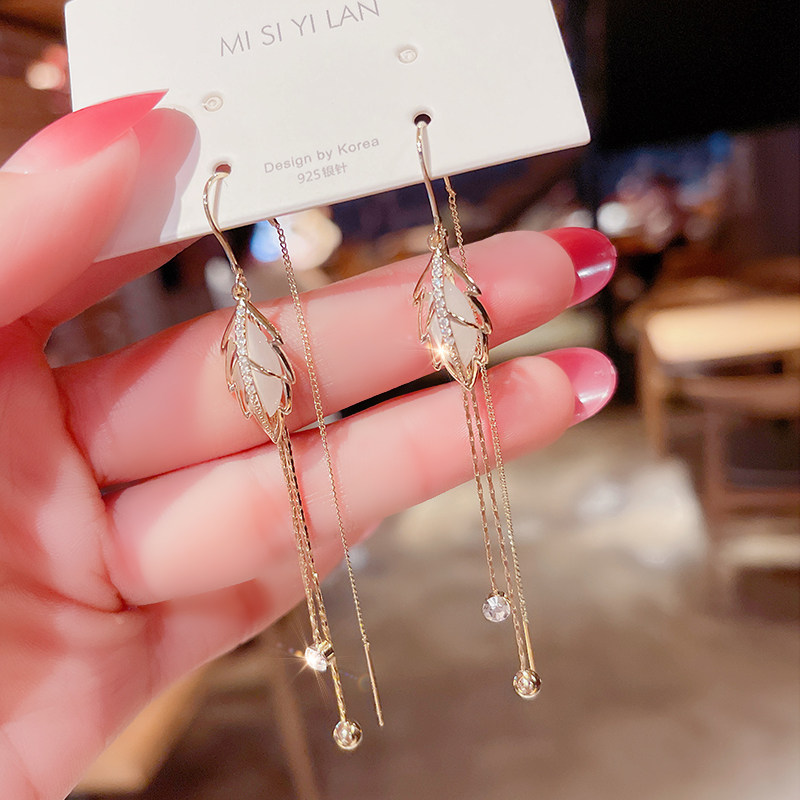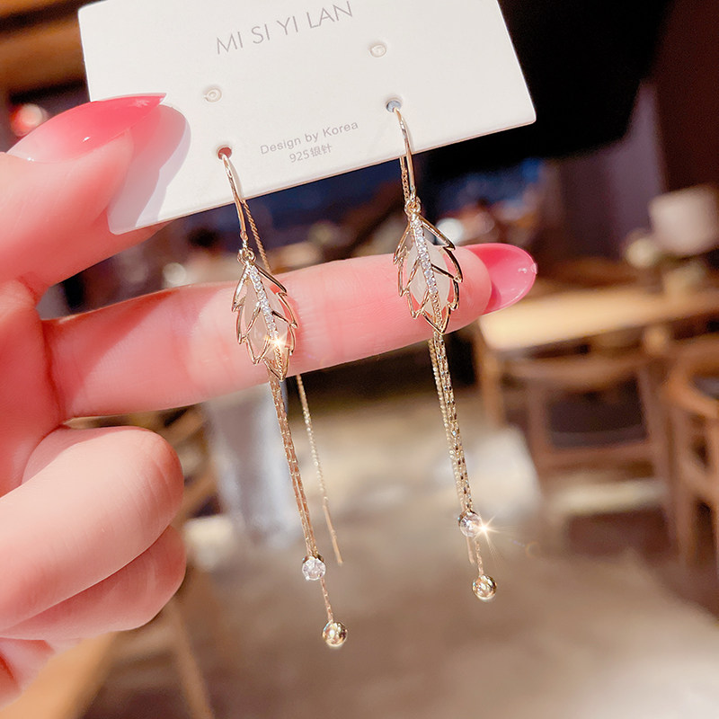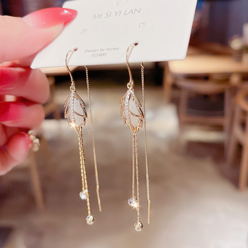 Superfairy Cat Eye Stone Foliage Anti-Loss Earrings Korea Temperament Long Version Streaming Suear Pendant Net Red Popcorn Design earrings