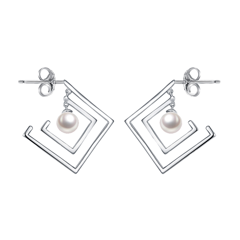 (China Gold) Zhenshang Silver Geometric Pearl Earrings Fashion Exquisite Stud Earrings Light Luxury Niche All-match Earrings Women