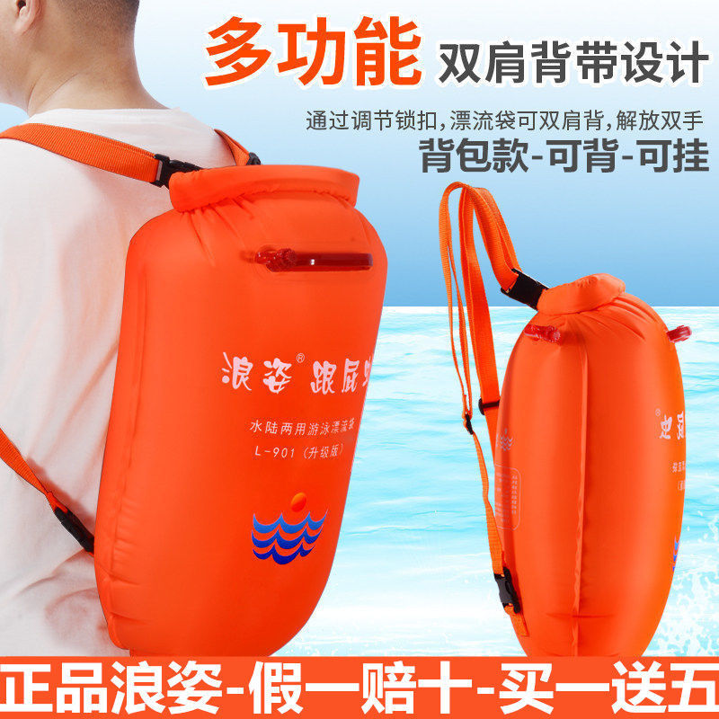 Langzi follower swimming bag thickened double airbag floating anti-drowning lifesaving ball waterproof bag swimming equipment professional