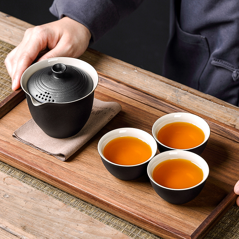 Travel Tea Set Group Portable Bag Quick Guest Cup One Pot Three Cups Outdoor Carry-on small set hands Grip Pot Tea Maker
