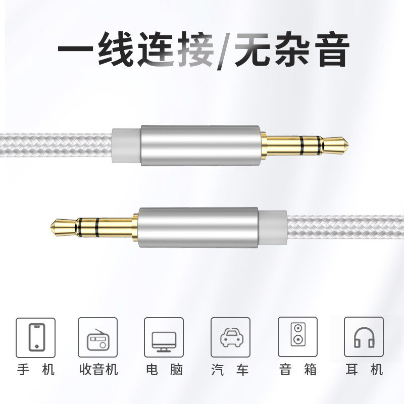 aux audio cable car with 3 5mm mobile phone connected to the speaker at both ends of the round hole butt car double-ended audio cable double-ended male-to-public universal car headset computer suitable output line 2 meters long