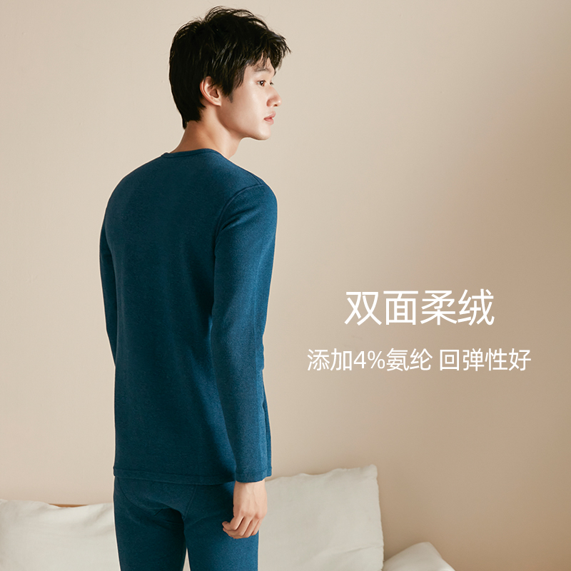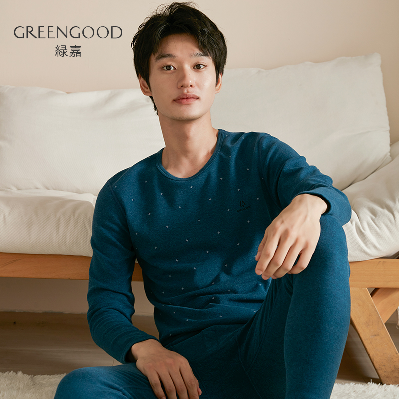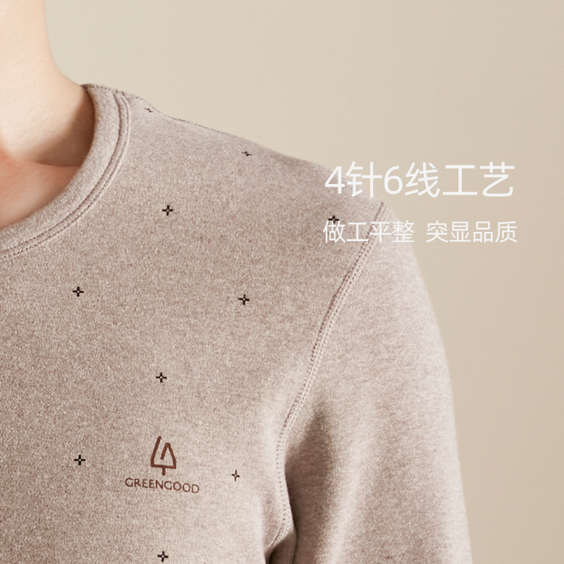 Green Garda (warm skin suede) mill wool pure cotton warm male autumn clothes sanitary pants lingerie suit round collar cotton sweatshirt bottom-shirt
