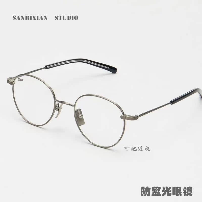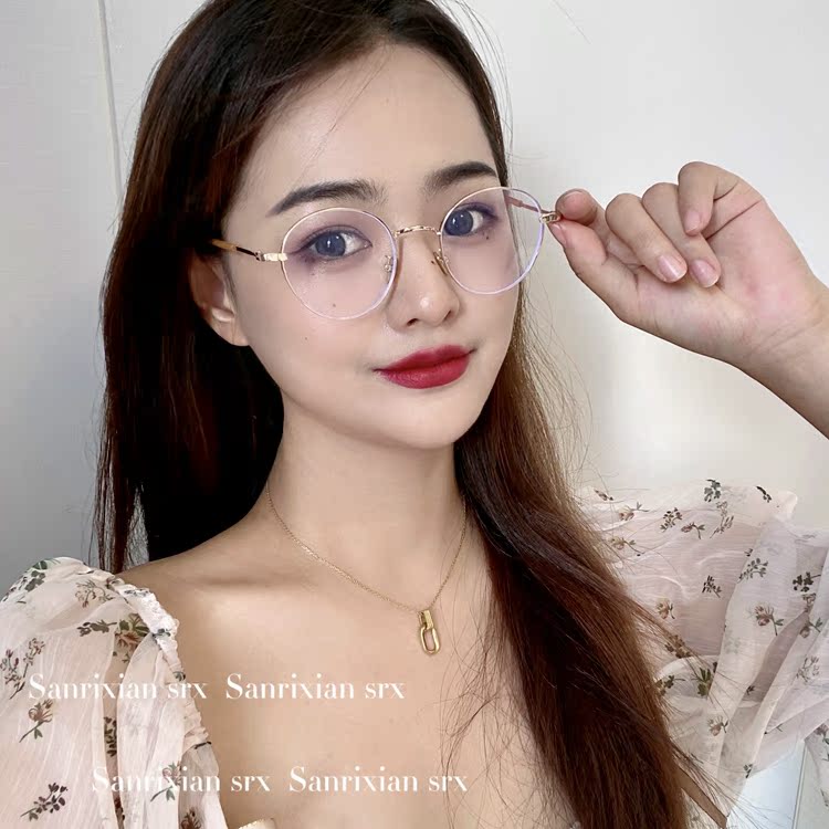 3rd Fresh retro metal round frame flat mirror 100 lap reduction age Anti-blue light glasses Literature and art silver frame Youth round face wave