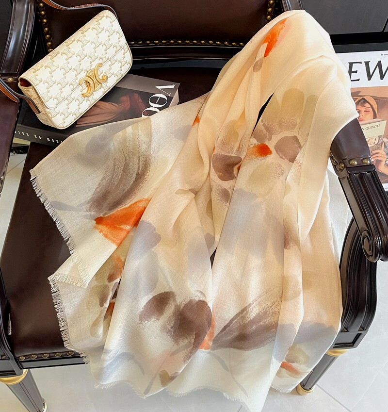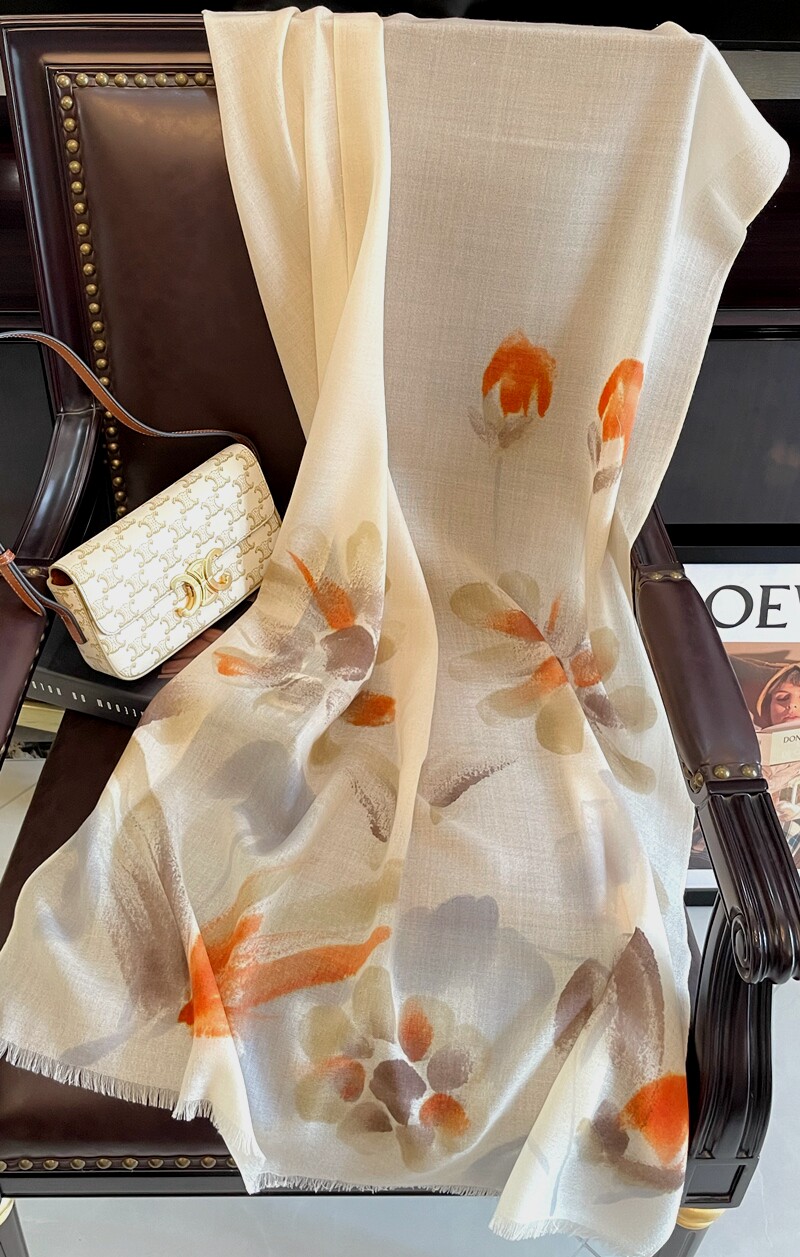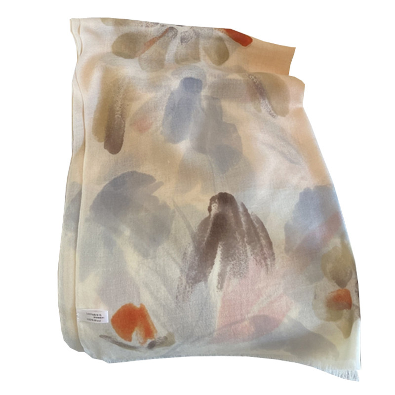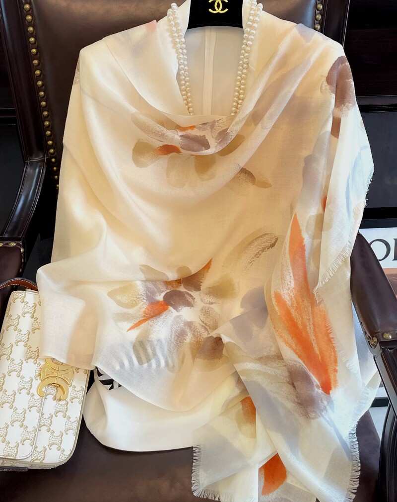 Hand-painted flowers autumn and winter new wool scarf women's thin Korean version all-match long version warm and white shawl dual-use