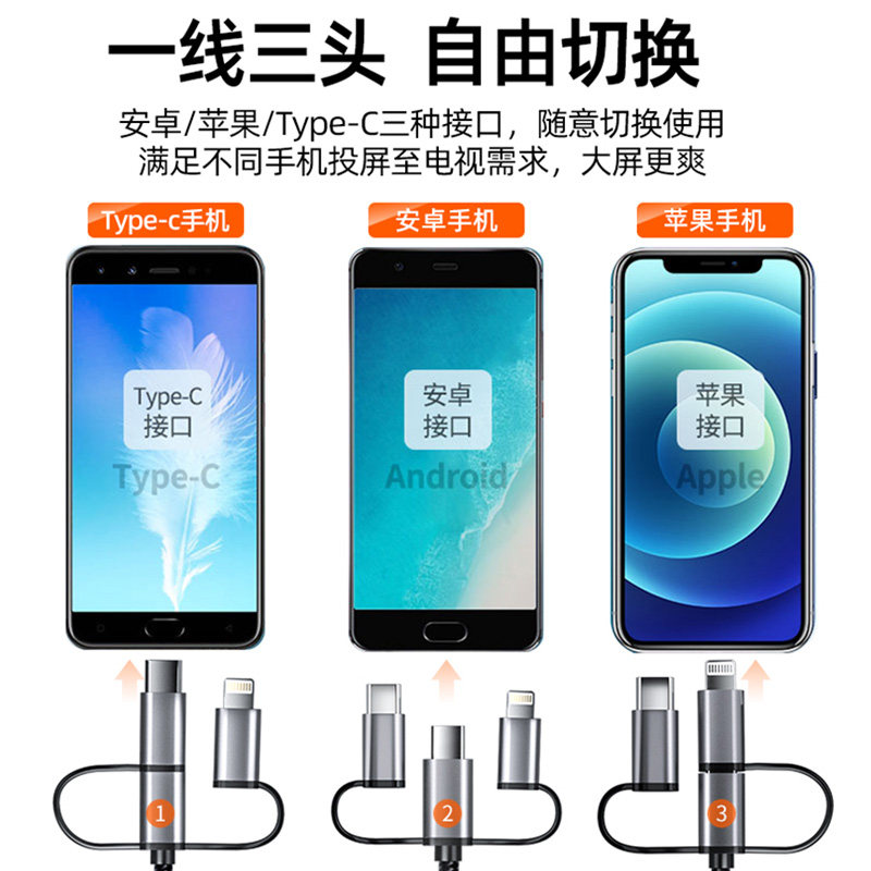 Mobile phone with screen line rotation version (Android and Apple common) Apple and Android TypeC three-in-one - vertical screen Apple and Android TypeC three-in-one cable delivery - vertical screen Android phone and tablet two-in-one