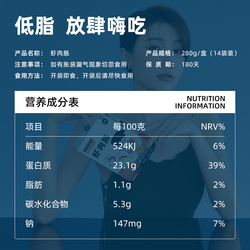 Instant caviar shrimp sausage (280g 14 small packets) (low fat and high protein) two boxes of shrimp sausage (280g*2 28 small packets) 32 9 boxes (delicious high protein family family