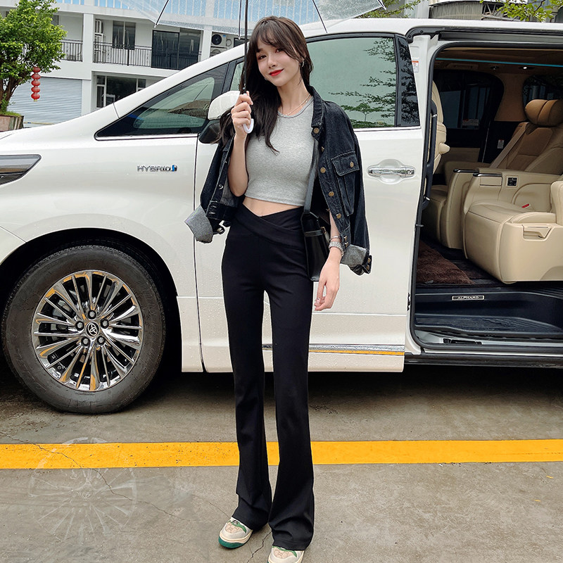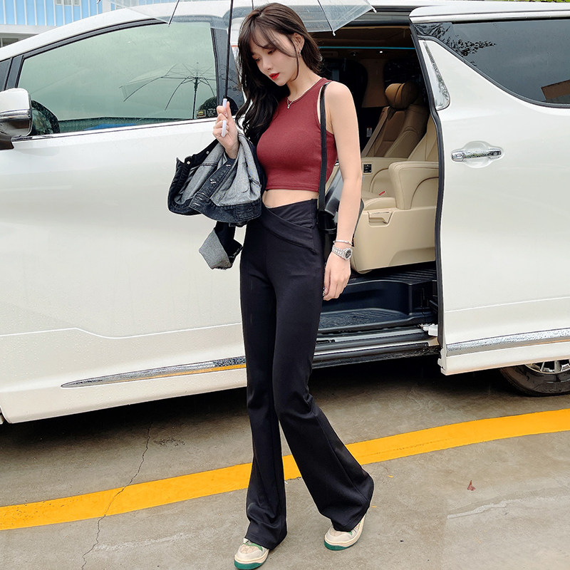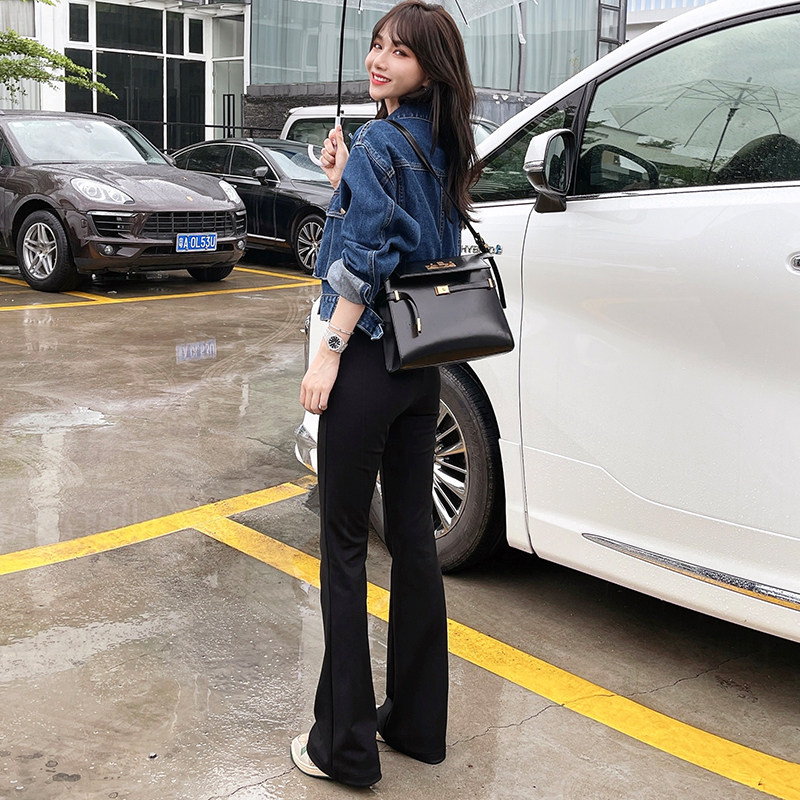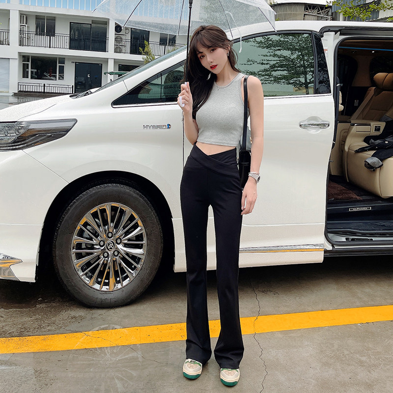 JUST CC Kaca women's official flagship Korean version V character high waist micro-laser-black pants with thin drag and long pants