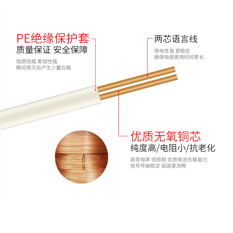 National standard Tianshitong 2-core 4-core flat oxygen-free pure copper fixed landline single-core telephone line 300 meters extension line