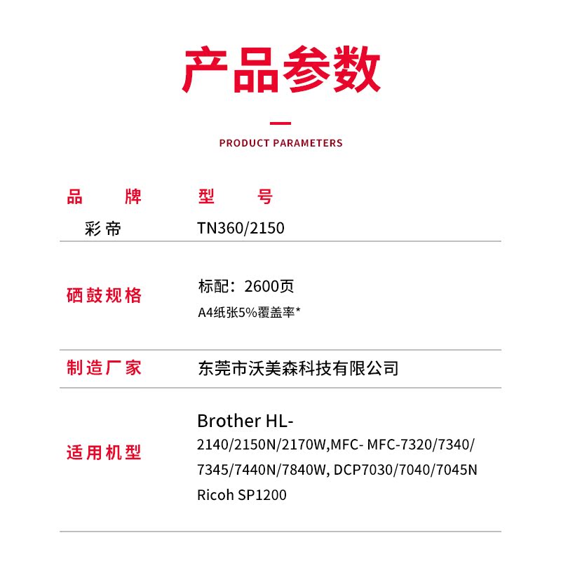 Applicable brother TN2115 powder box MFC7340 HL2140 7450 DCP7030 M7250N DR2150