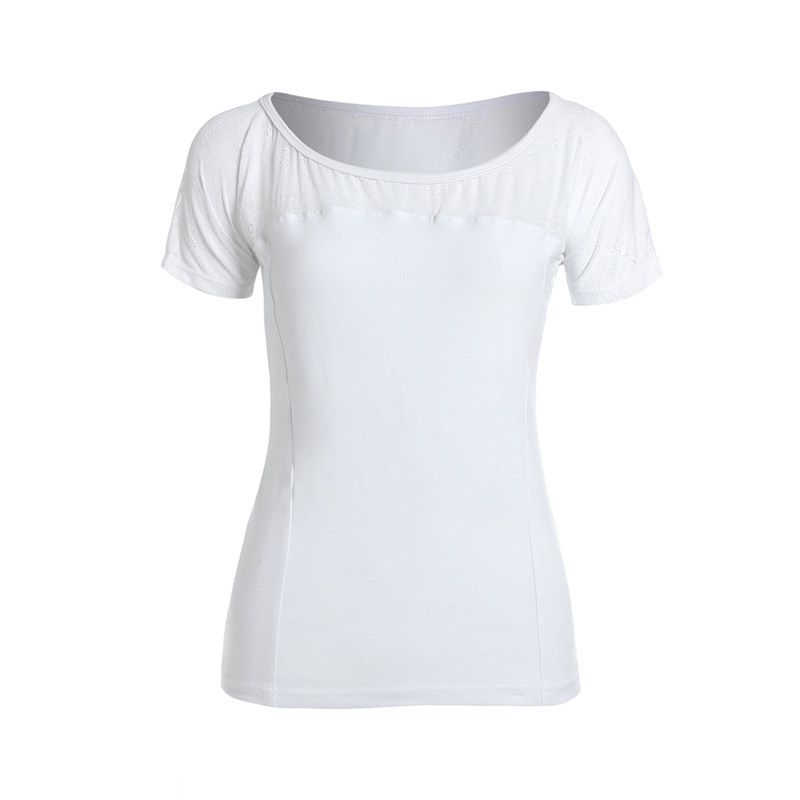 Adult Gymnastics Suit Round Collar Short Sleeves Blouses Ballet Dancer Cotton Spandex Splicing Lace Dance Bodysuit Woman