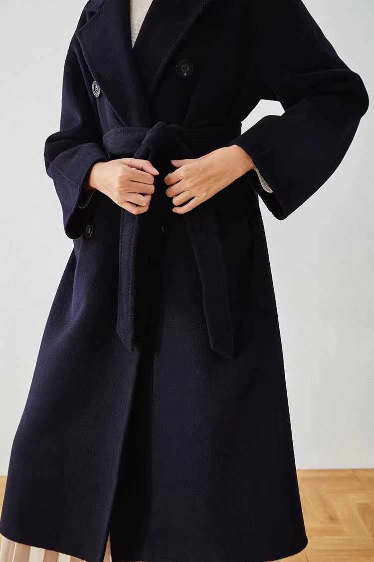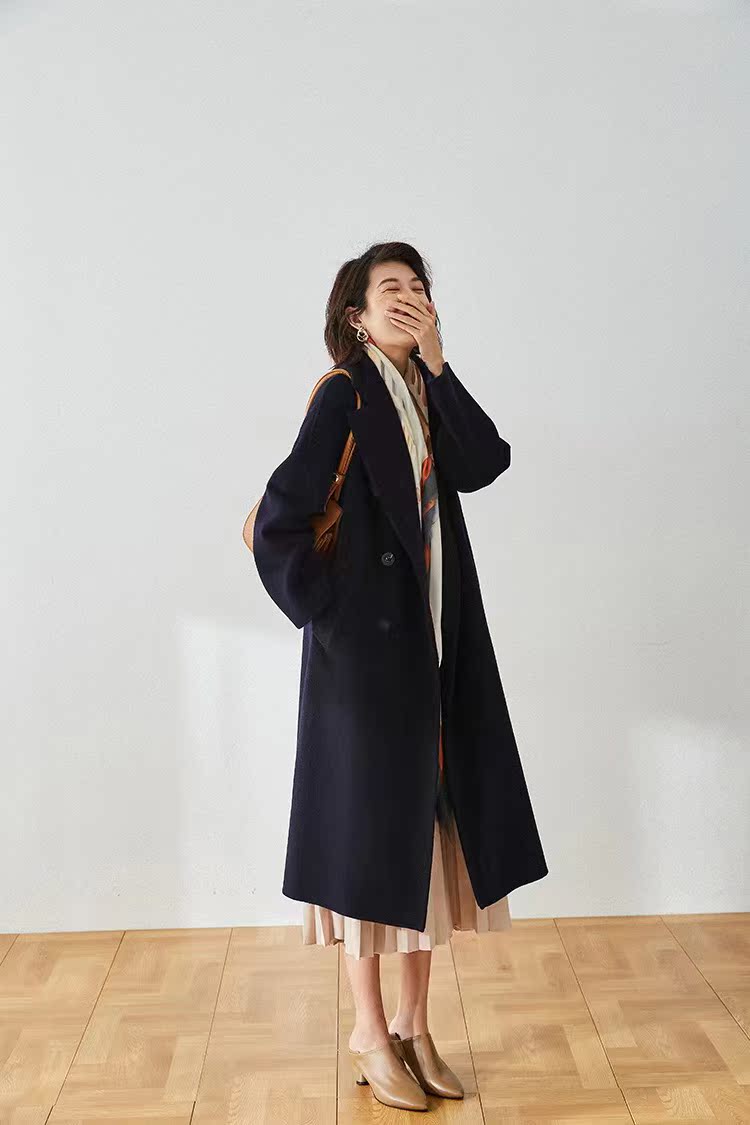 Tibetan blue double face cashmere big coat woman mid-end high end 2023 autumn winter new body double-row buttoned jacket-Taobao