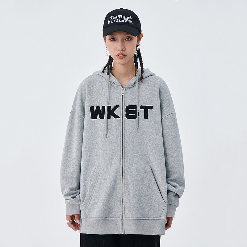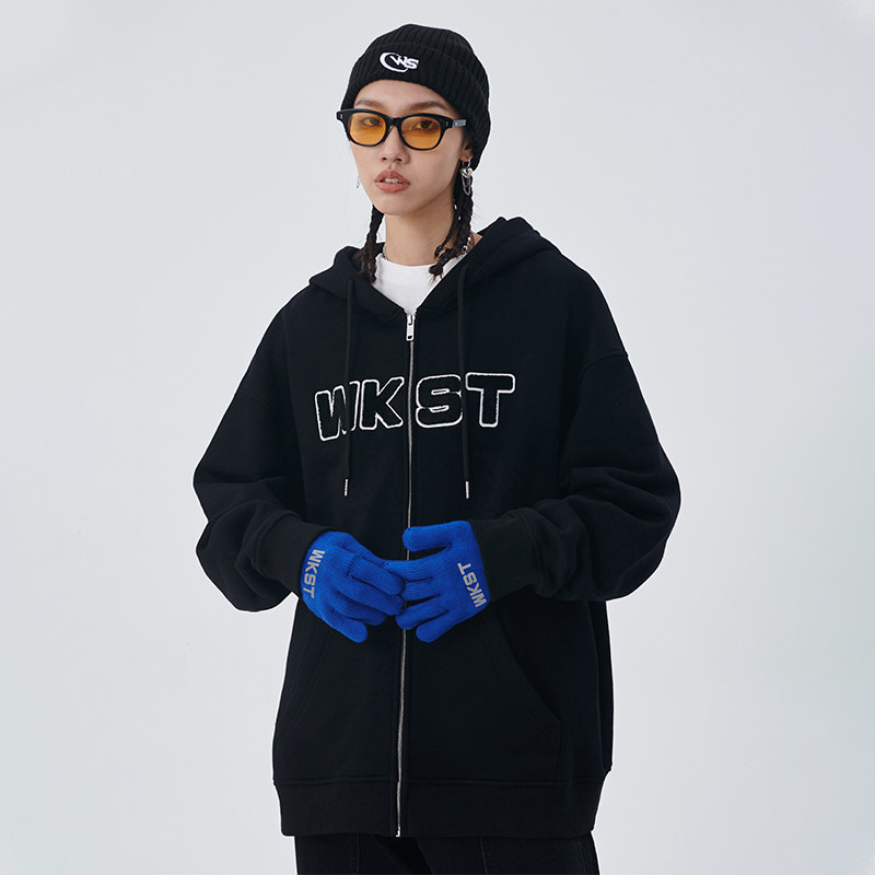 (Tide WOO exclusive) WORKSOUT (WKST) towel embroidered embroidered cardigan jacket men and women couple thick T-shirt