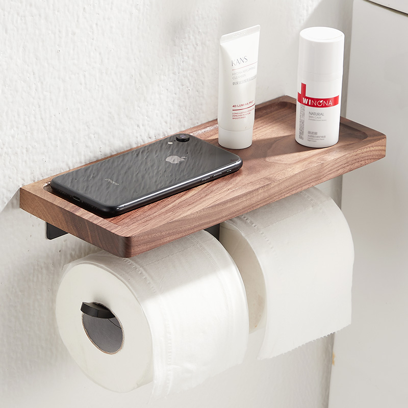 Free Punch Black Walnuts Wood Paper Towel Rack Toilet Roll Toilet Paper Rack Makeup Room Creative Solid Wood Bathroom Toilet Paper Shelf