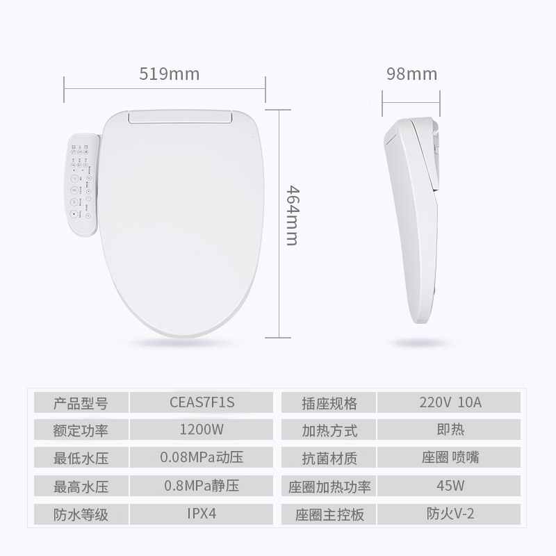 Beauty mark i.e. hot intelligent electronic cover plate CEAS 7F1S ultra-thin i.e. hot automatic electric heating home toilet lid-Taobao