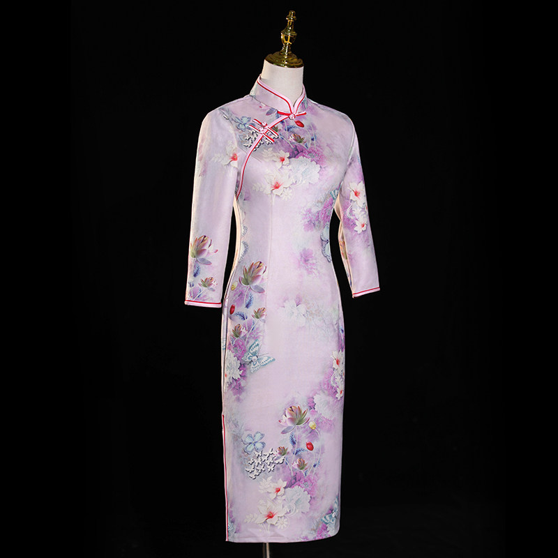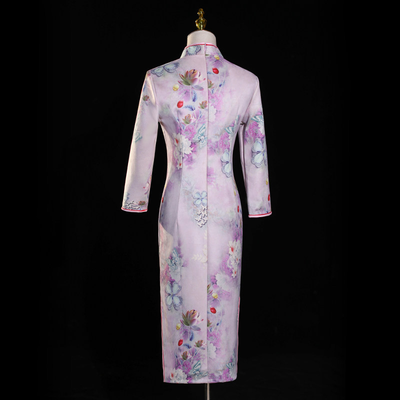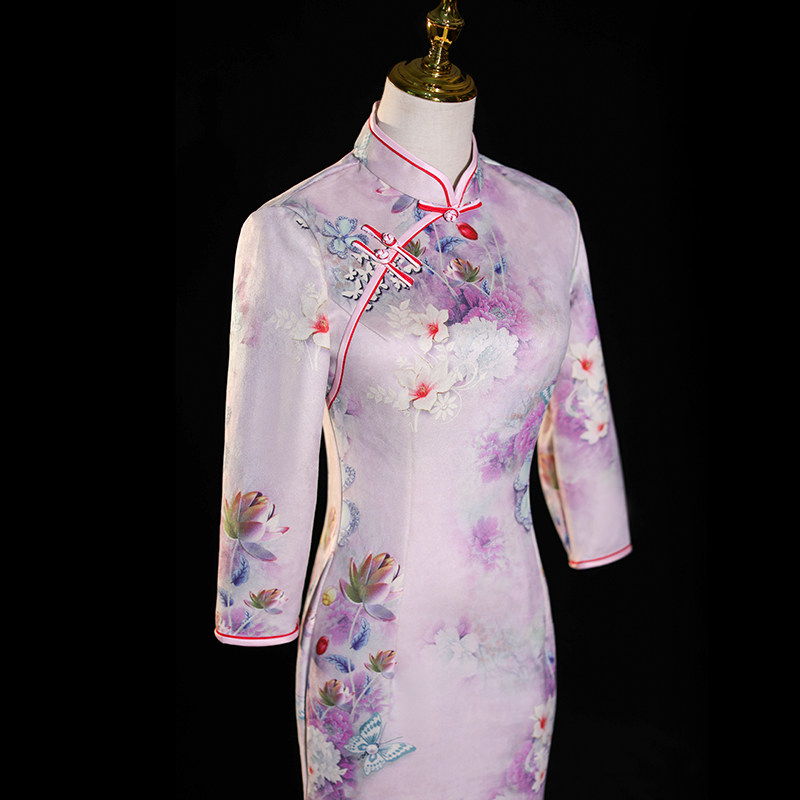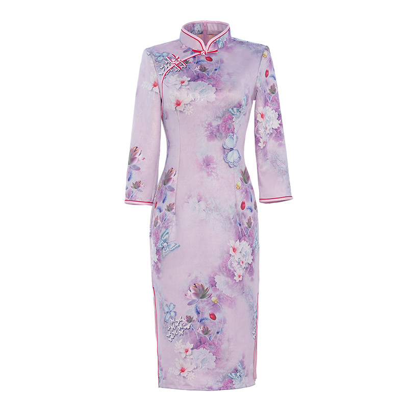 Improved Qipao 2022 New High-end Suede Suede Retro China Wind Medium Long Version Long Sleeves Flowers Foreign Spring