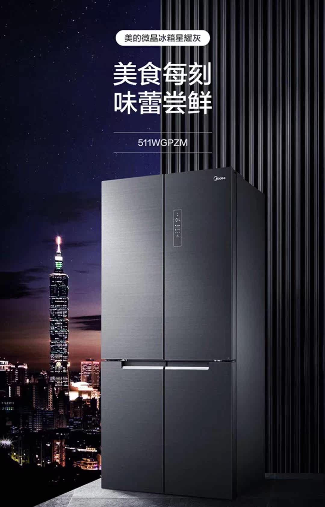 Midea 511 liters first-class four-door microcrystalline intelligent sterilization BCD-511WGPZM Xingyao gray