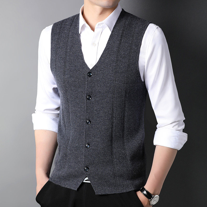 100 pure kashmir wool vest men's midlife V collar cardiff knit sweater waistcoat waistcoat Daddy Shoulder Thin cashmere cardiff