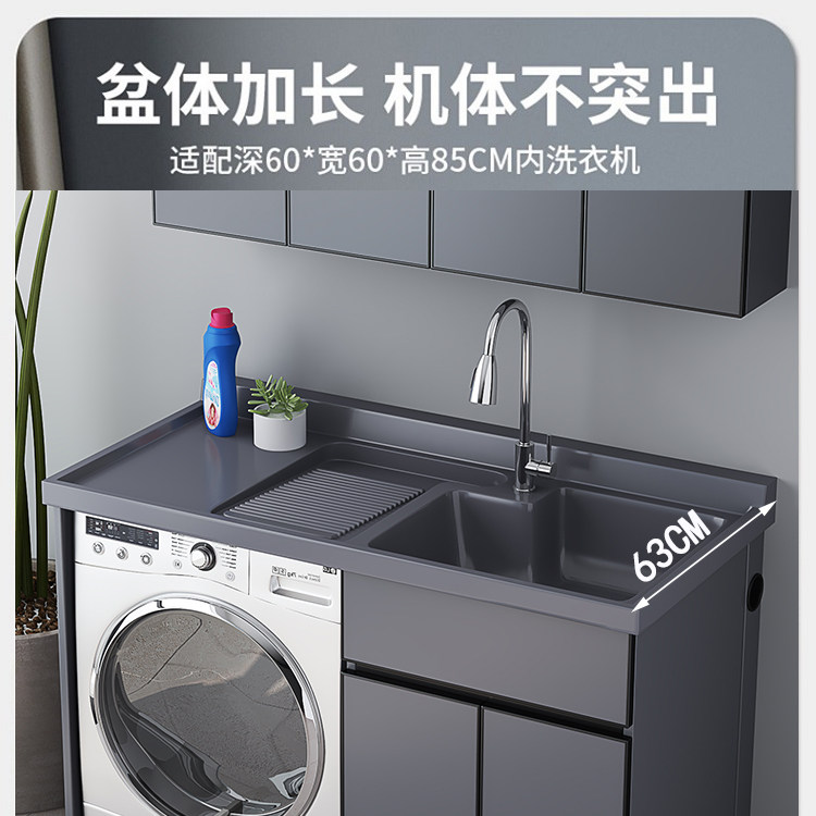 Balcony washing machine cabinet washbasin integrated combination quartz stone countertop with washboard laundry table washbasin cut corner custom