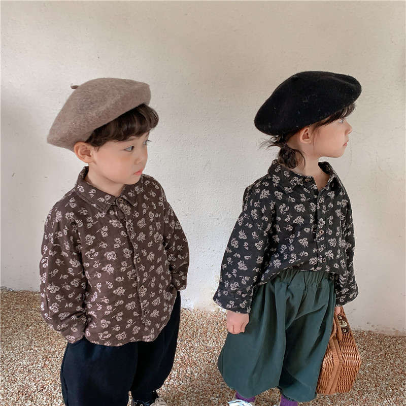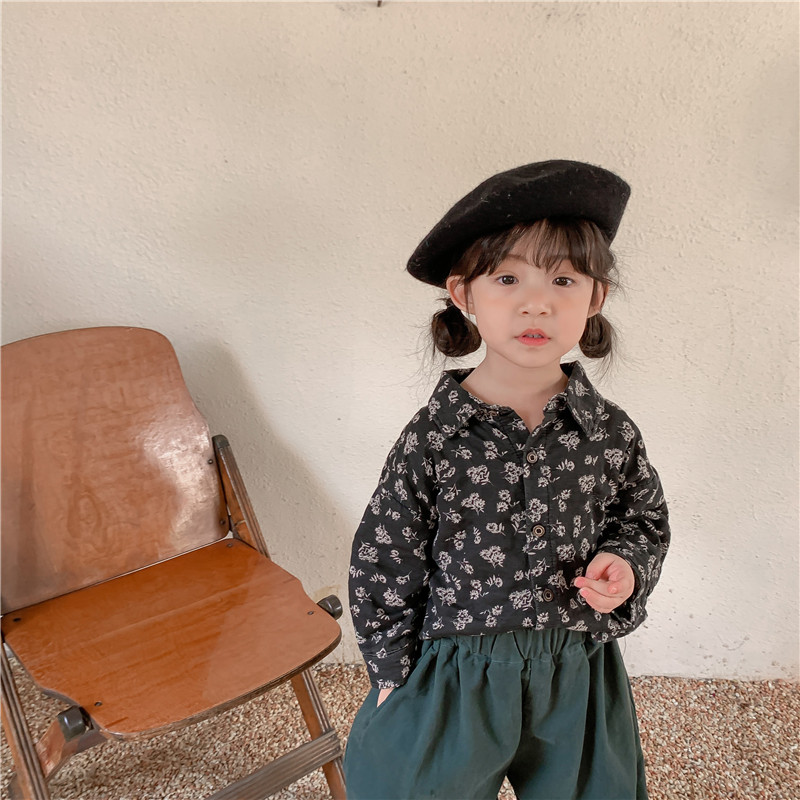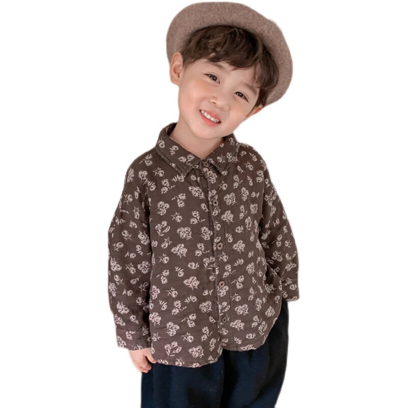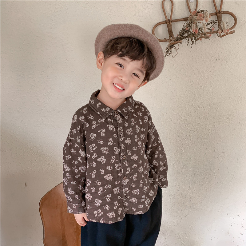 Boy 2022 new autumn cotton crushed flower long sleeved shirt female baby Sen retro - style coat coat