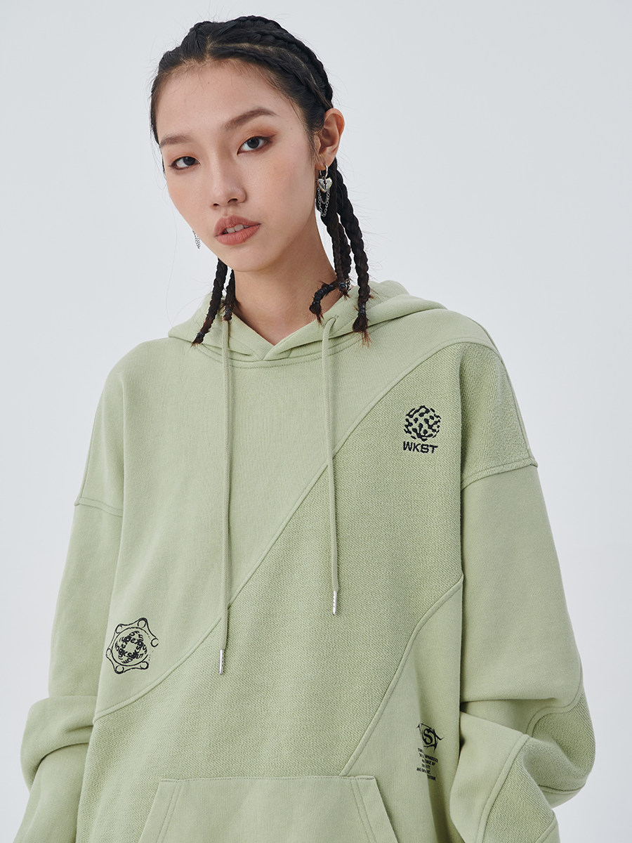 (Liu Jun same style) WORKSOUT (WKST) Guochao brand front and back stitching hooded sweatshirt male hip-hop street