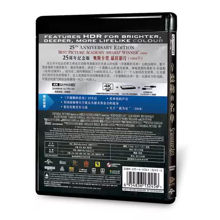 Genuine Schindler's list 4KUHD Blu-ray BD50 CDs 25 Anniversary Edition Oscar Movie Disc