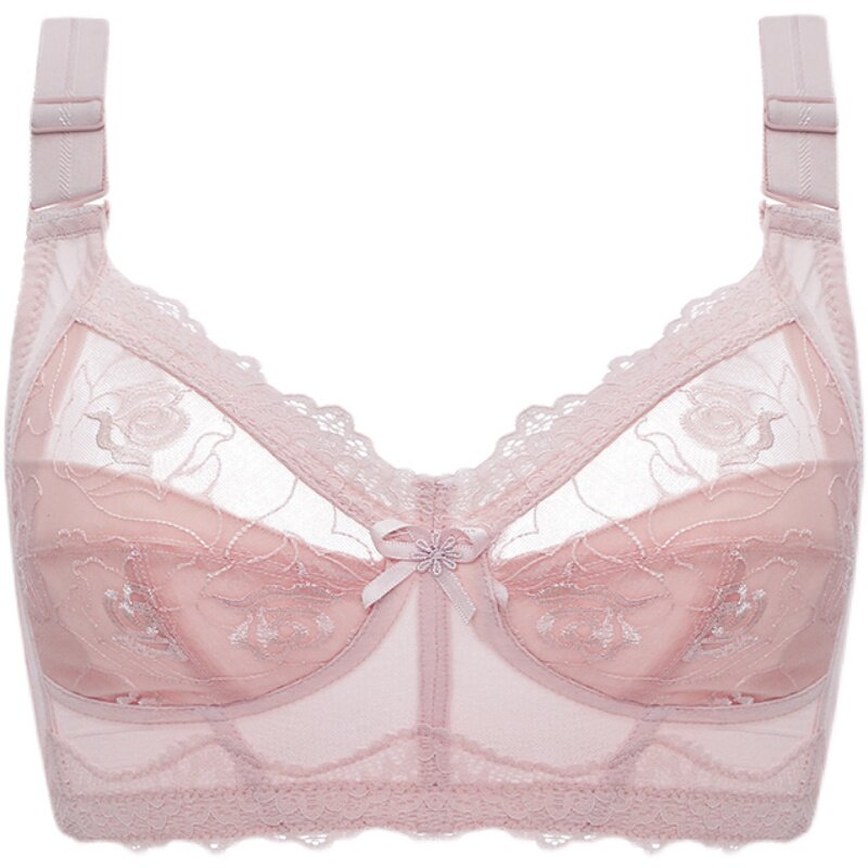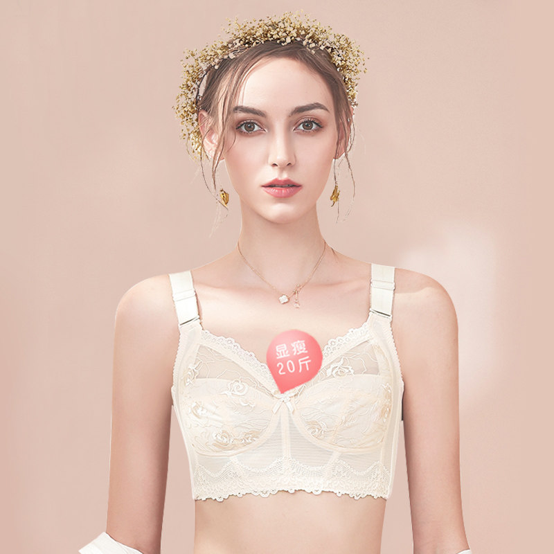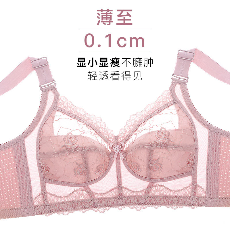 Gold powder Eve underwear flagship store lace ultra-thin no steel ring full cup big breasts show small underwear women's embroidery bra